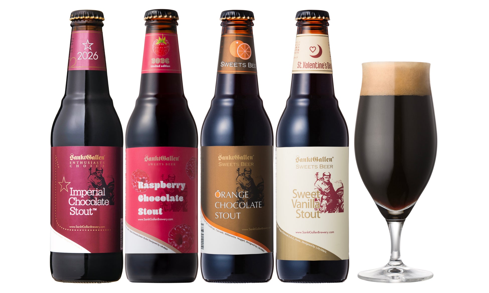 発売21年目を迎える「インペリアルチョコレートスタウト」をはじめ、2026年の新作として麦芽量の30%相当にもあたるラズベリーを使用した「ラズベリーチョコレートスタウト」をラインナップ。全4種類のフレーバーを一斉発売します。