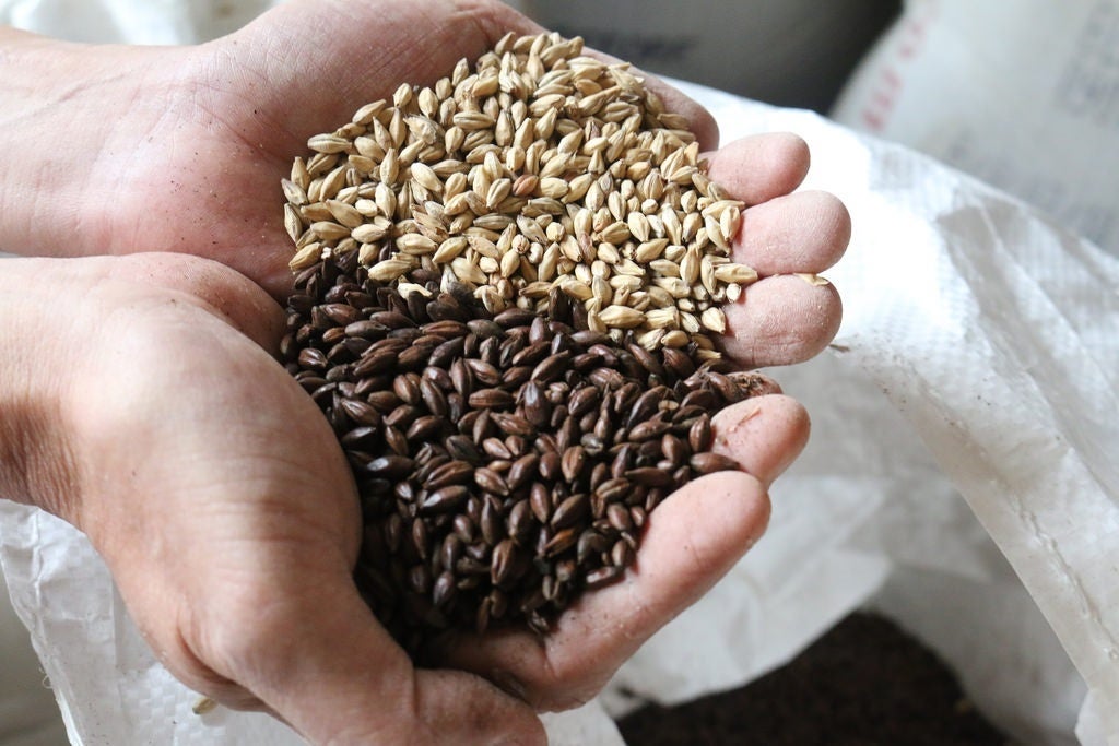 通常のビールに使うベース麦芽は約85度で焙煎していますが、チョコレートビールに使う麦芽は約160度の高温で焙煎しています。ベース麦芽が焦げる寸前で、色はダークな茶色。かじるとほろ苦いビターチョコのような風味がするため“チョコレート麦芽”と呼ばれています。