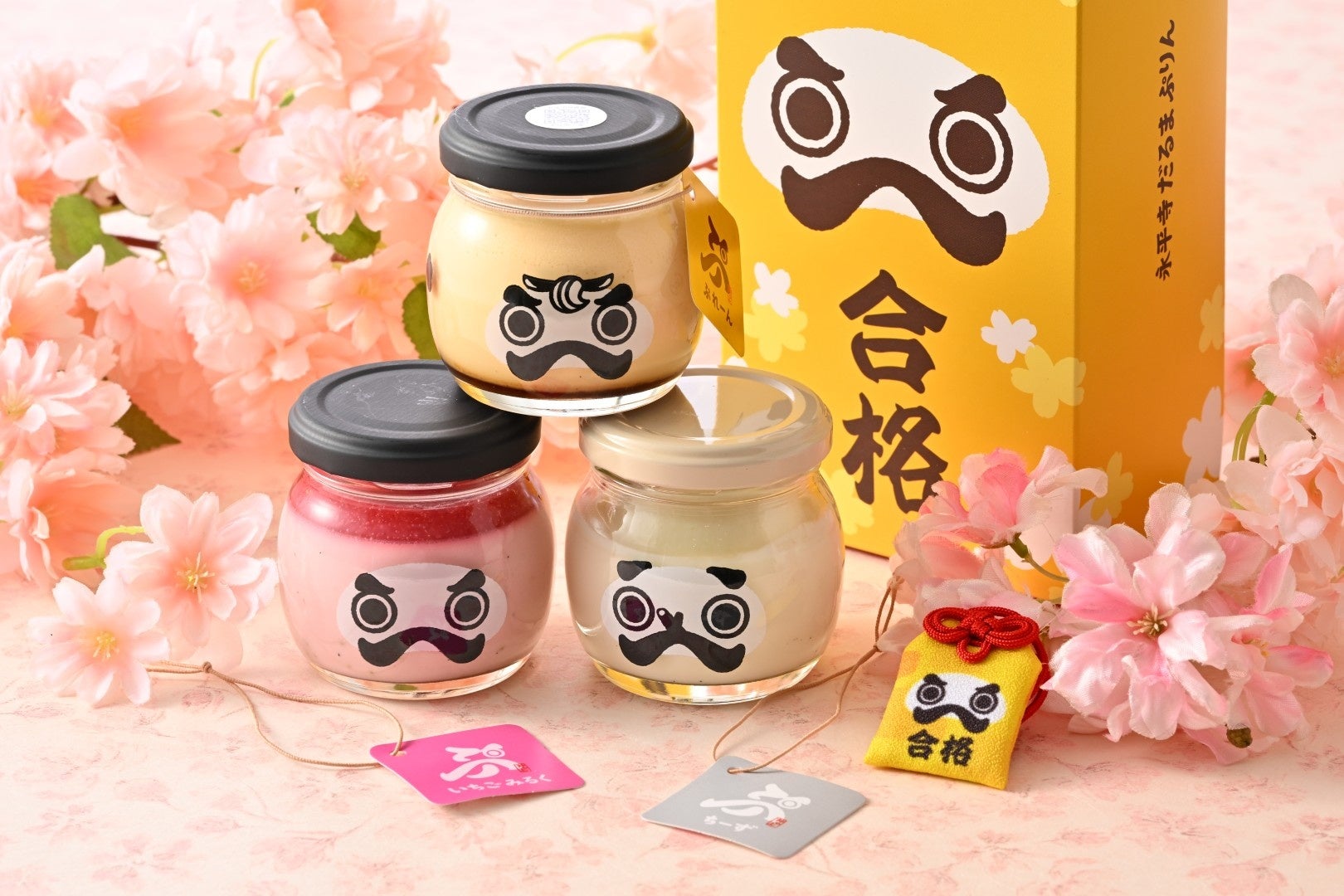 受験シーズンに合わせて毎年好評の「合格だるまぷりんセット」は、大本山永平寺にてご祈祷を受けた合格祈願お守り付きの応援スイーツです。