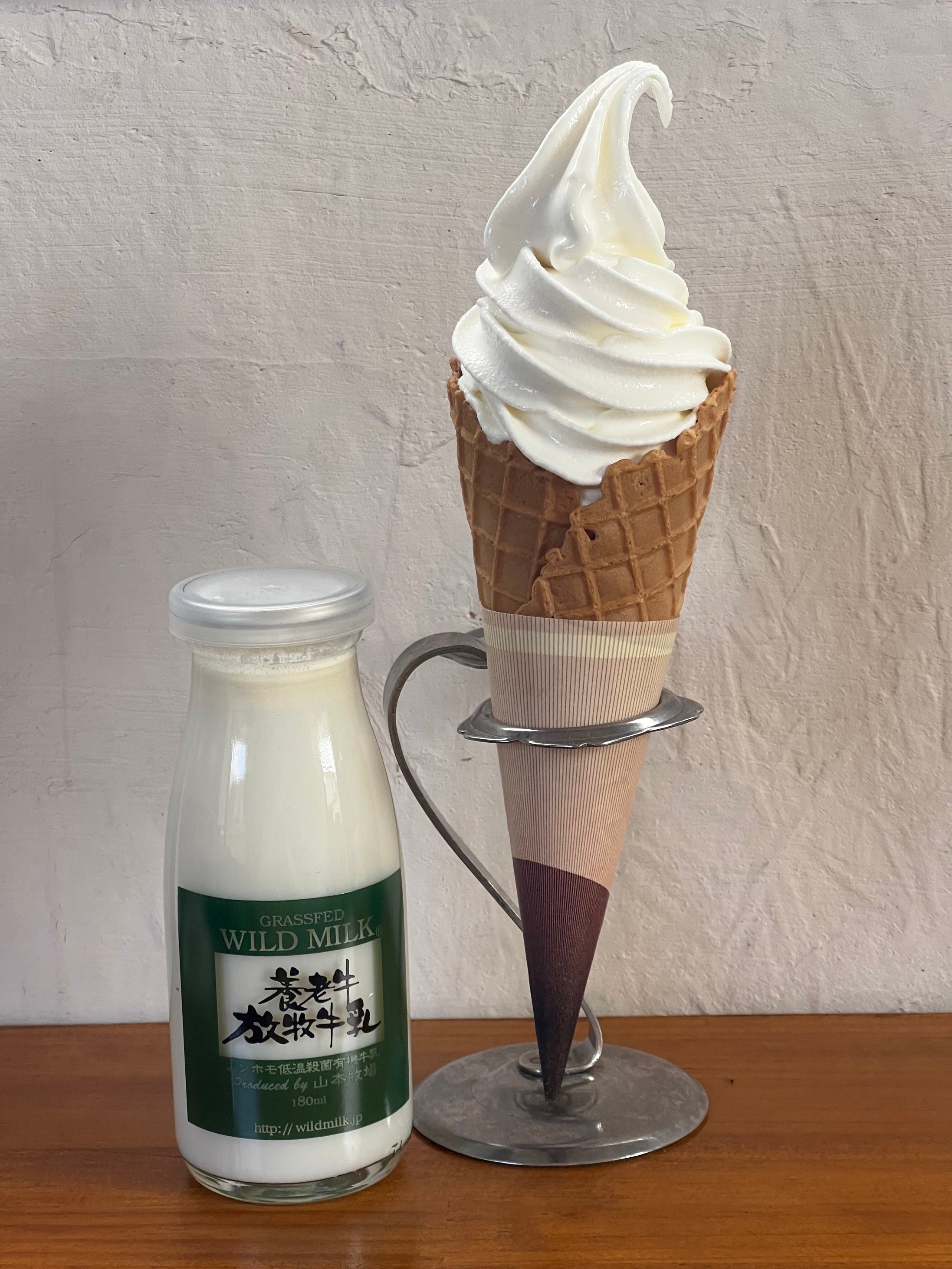 農薬と化学肥料を使用しない牧草で放牧して育てた牛の牛乳。