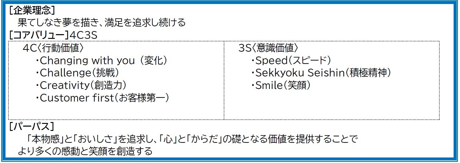 普遍的な価値である「おいしさ」を通じ、お客様の「心」と「からだ」の礎となる価値を次世代、その先まで持続的に提供し続けることで、より豊かで明るい未来を皆様と共に創造していきたいという決意を込めています。