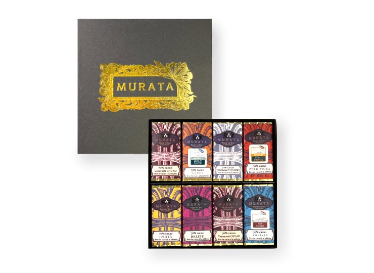 カカオ豆の選別から焙煎・熟成までを一貫して手がけるブランド MURATA による、産地の異なるカカオ豆を70%のカカオ分で仕上げたチョコレートの詰め合わせ。8種の個性豊かなカカオを一度に楽しめる贅沢なセットです。