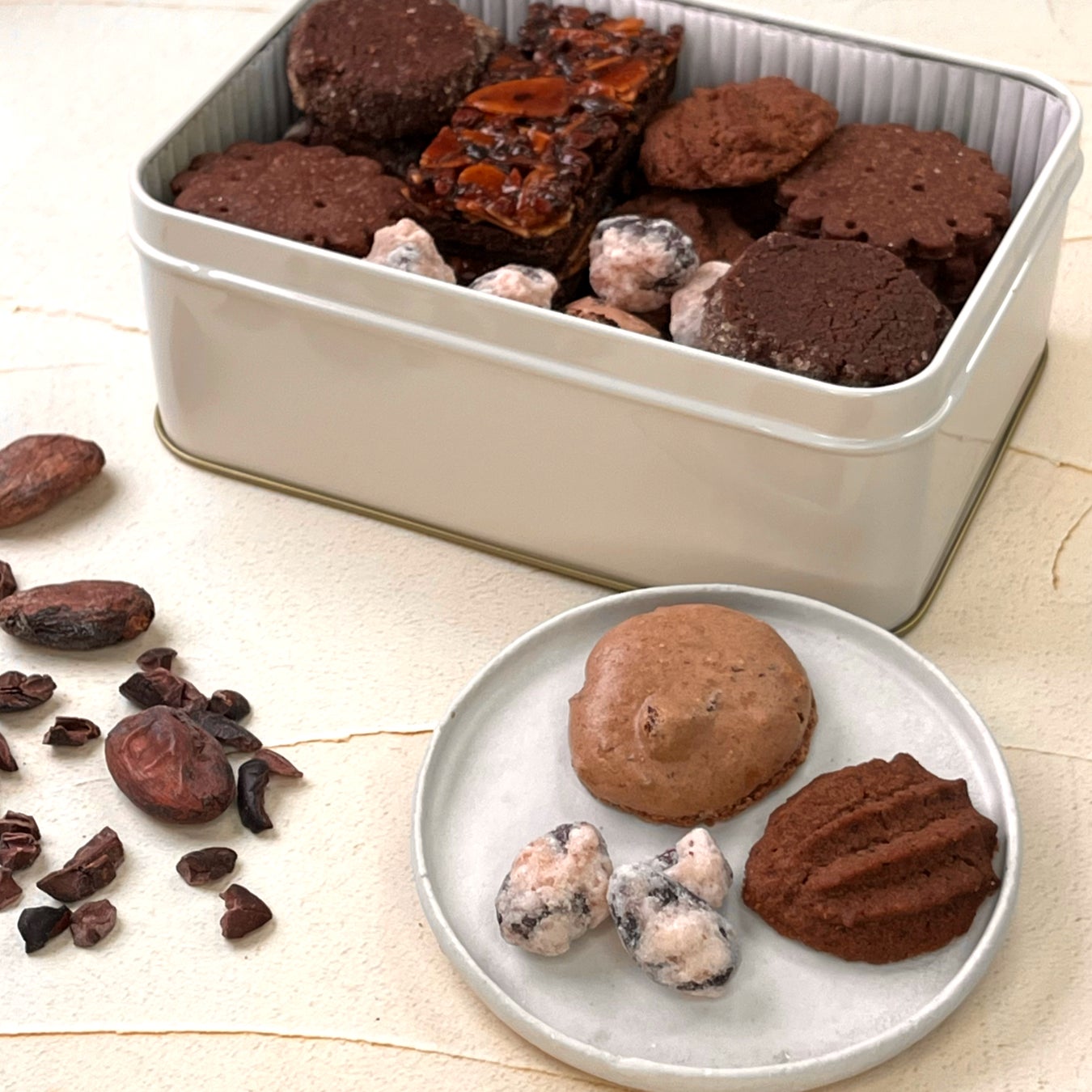 “開けた瞬間の感動”を目指してつくられた、カカオ専門店 suminoza のオリジナルクッキー缶。