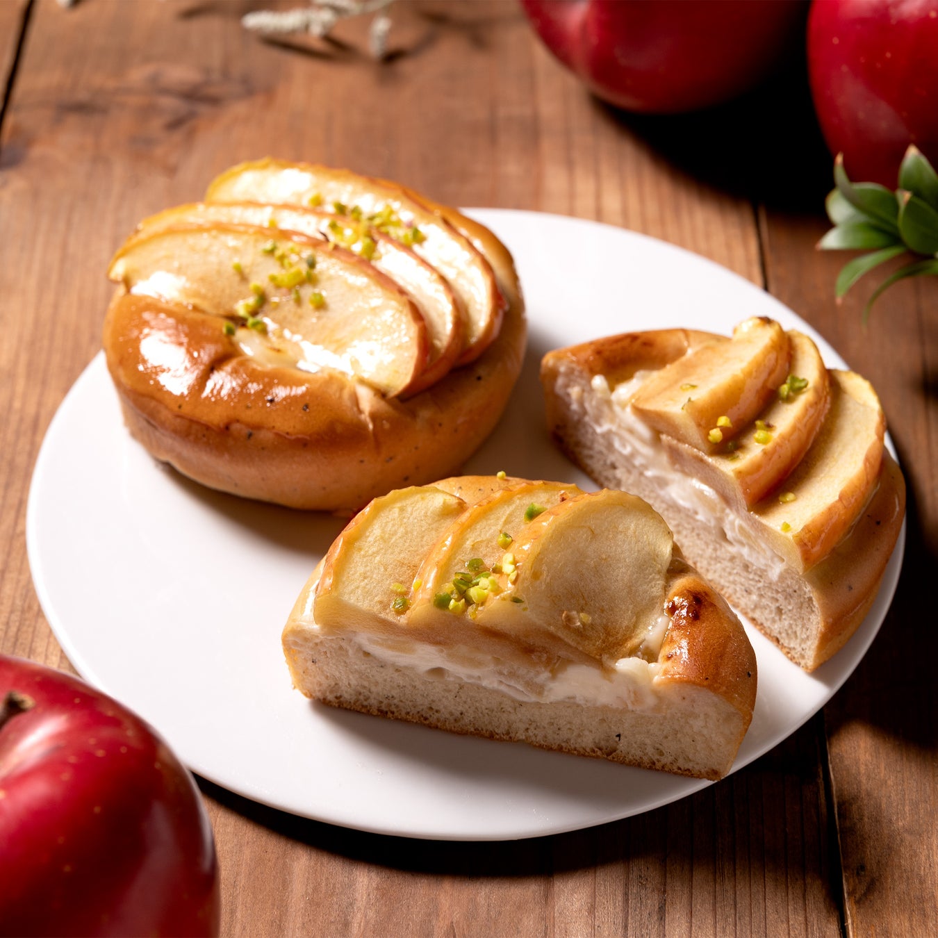 アーモンドクリームを絞り、紅玉りんごを並べて焼き上げた「紅玉りんごタルト」や、シナモンが香るダマンドとプレザーブを、ラムレーズンと合わせて巻き込み焼き上げた「アップルシナモンブレッド」などの期間限定の味わいをご用意しております。りんごの味わいと食感がひろがるル ビアンのパンを是非お楽しみください。