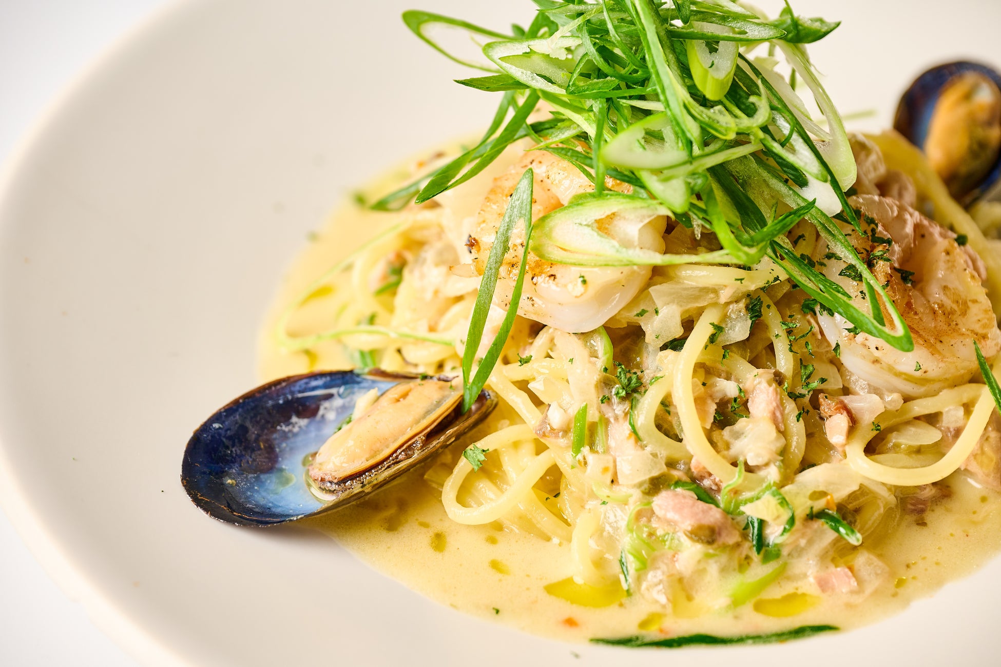 ・海の幸と九条ネギのパスタ 軽やかなクリームソース 2,380円(1,680円)