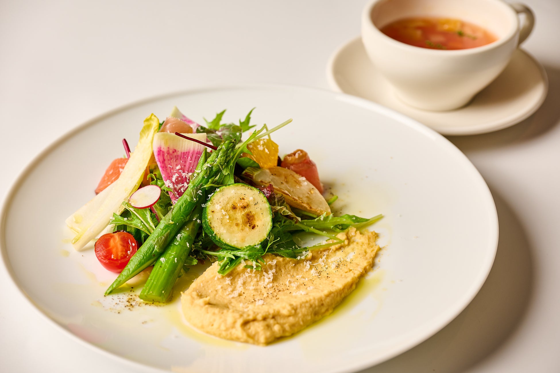 ・サーモンと生ハムと季節野菜のサラダ(スープ付き) 2,480円(1,780円)