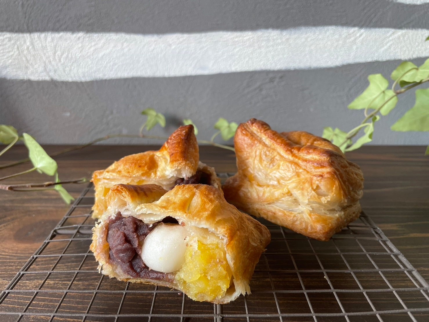 さつまいも、こしあん、白玉の3種類の具材を発酵バターが香る生地に包み焼き上げたパイは相性抜群です。