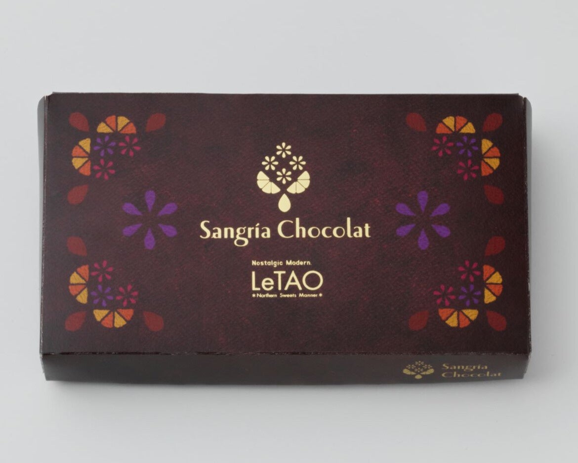 赤ワインやフルーツを合わせ「サングリア」をイメージした芳醇なチョコレート。北海道産のぶどうを使用した赤ワインの上品な香りと、ミルキーな北海道産生クリームが調和した赤ワインガナッシュに、赤ワインに漬け込んだオレンジピールやドライ苺、ドライブルーベリーなどを合わせ、さわやかな酸味や甘みを演出。最後まで華やかな余韻がお楽しみいただけます。
