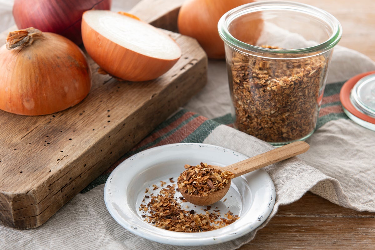 また、約400度の超高温スチームで短時間に焙煎するように作られるため、飴色のローストタマネギのような芳醇な香りが特徴です。市販されている従来乾燥技術で製造されたオニオンパウダーと比較すると135倍の香り(※当社比)を有しているのが「タマネギぐるりこ」の特徴です。