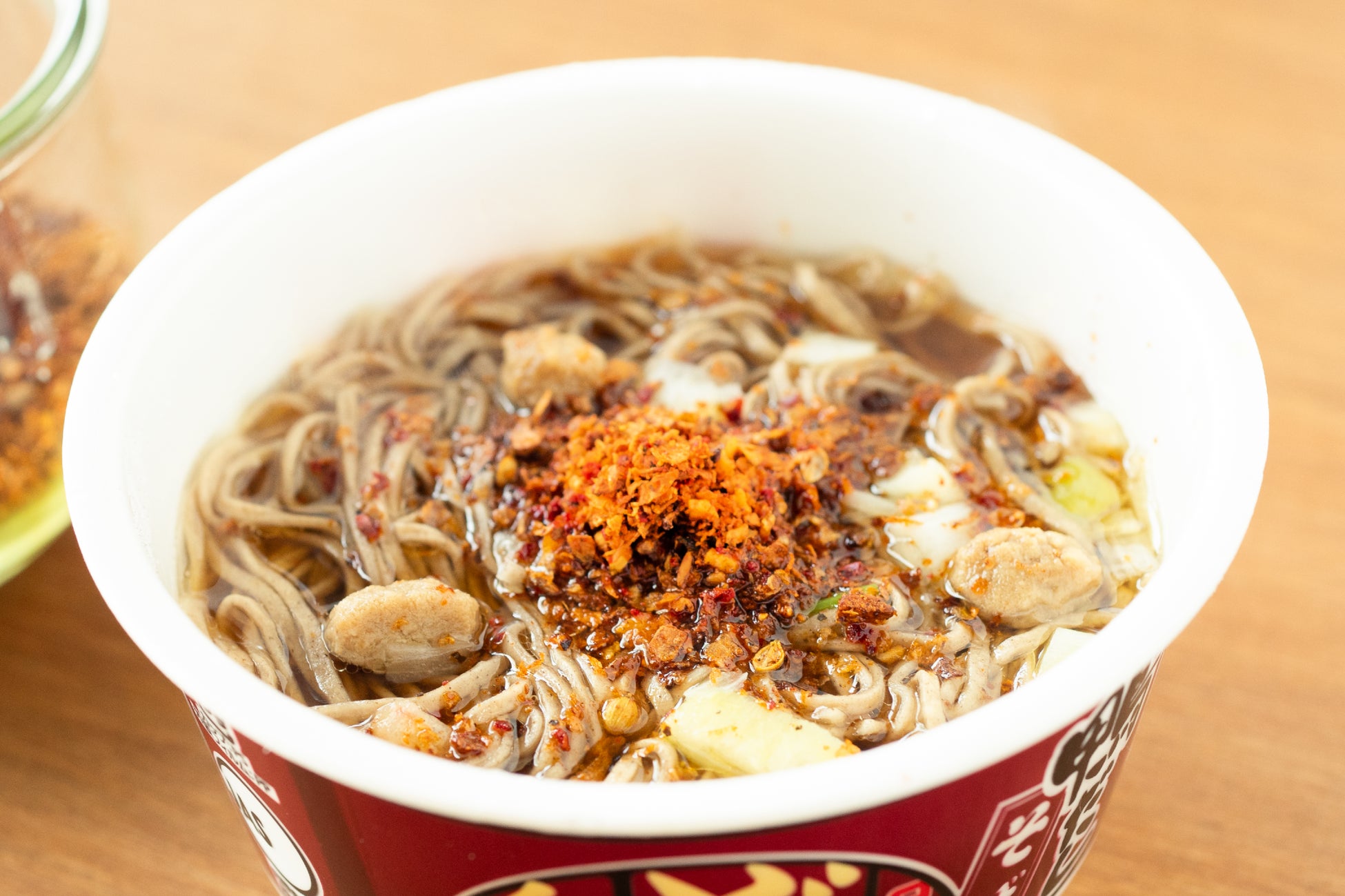 温かいうどん、そば、やきそば、油そば、カップ麺などに薬味として加えると、やみつきのおいしさに。