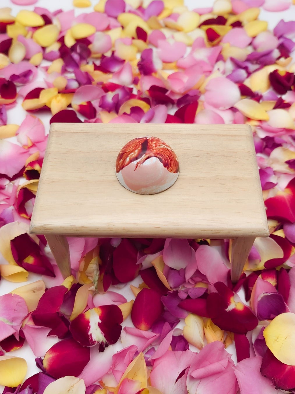 北海道・恵庭市の羊牧場「えこりん村」で育てられた無農薬のローズを使ったボンボンショコラ。RAMSのチョコレートを購入したことがきっかけで、「私のローズがRAMSの仲間に入りたいと言っています」とオファーをいただきました。ローズとペタル(花びら)をエクアドル産のフルーティーで華やかな香りが特徴のダークチョコレートのガナッシュと2層に仕上げました。