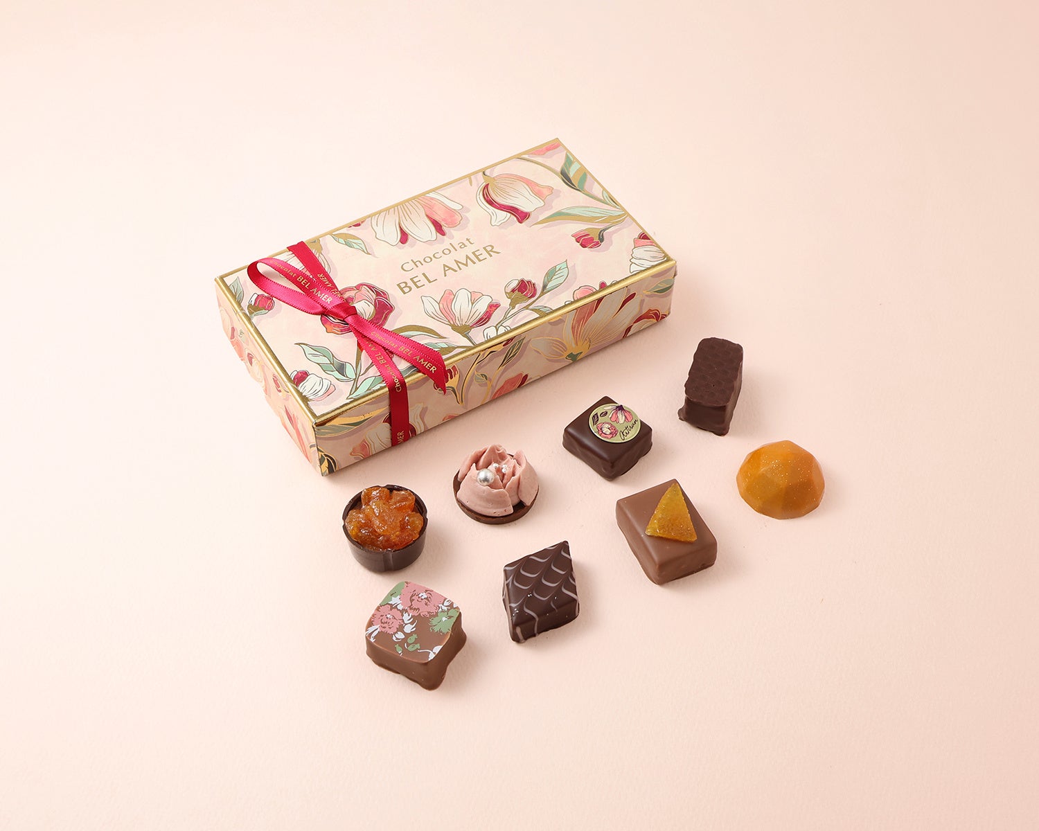 ベルアメールならではの繊細なチョコレートの味わいと、多彩な素材のマリアージュを一箱に詰め合わせました。華やかな見た目と上質な味わいで、大切な方へのギフトにもおすすめのアソートです。