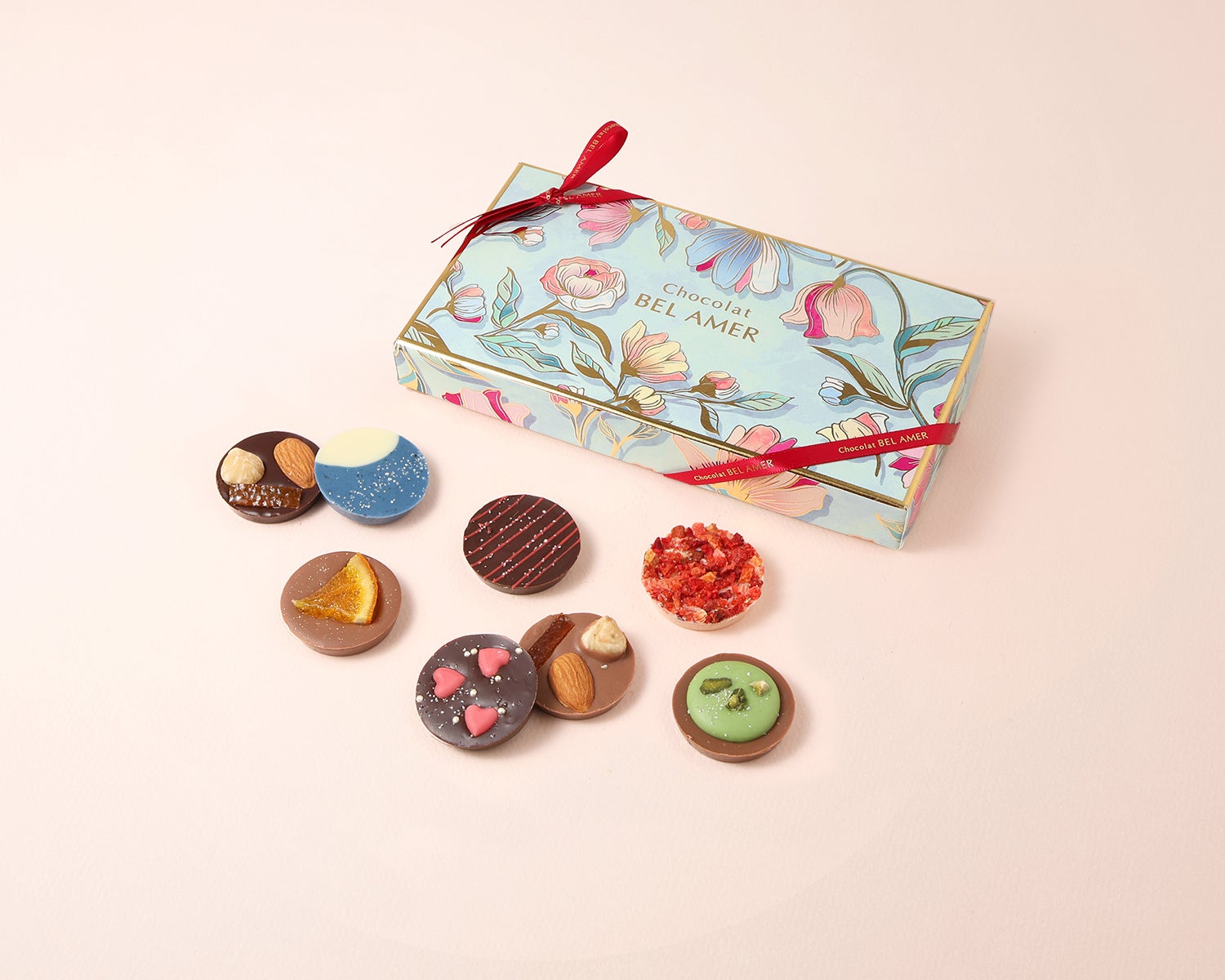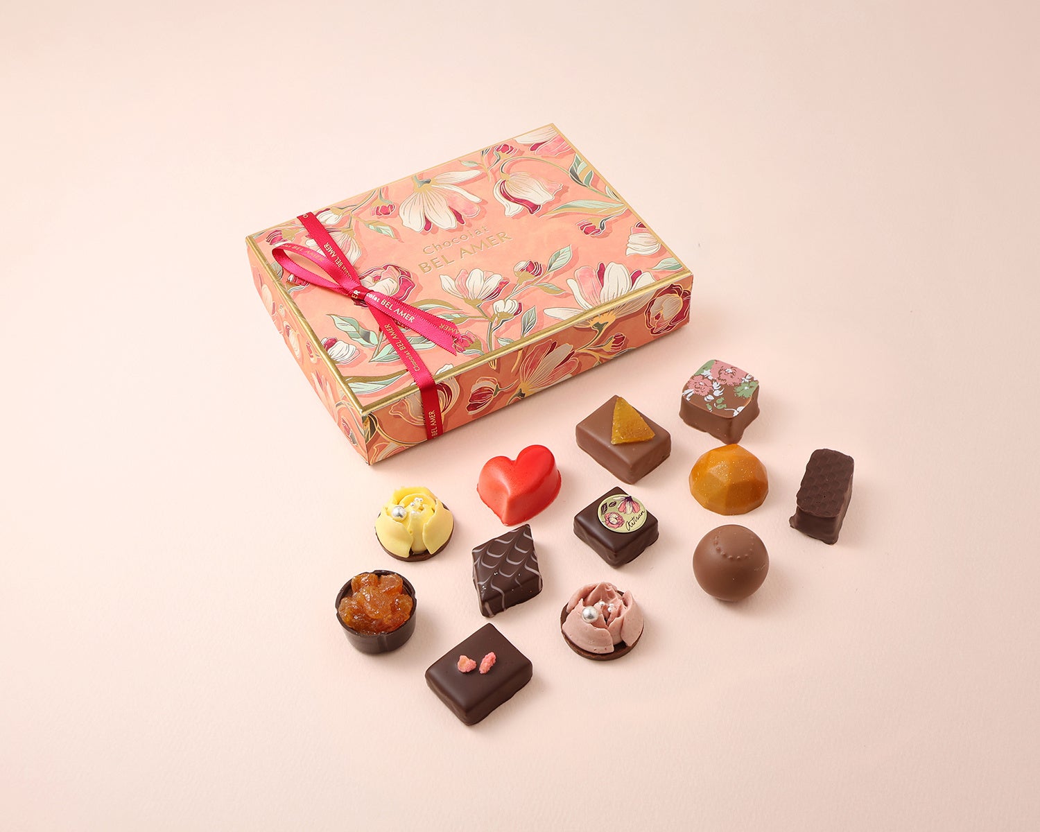 ベルアメールならではの繊細なチョコレートの味わいと、多彩な素材のマリアージュを一箱に詰め合わせました。華やかな見た目と上質な味わいで、大切な方へのギフトにもおすすめのアソートです。