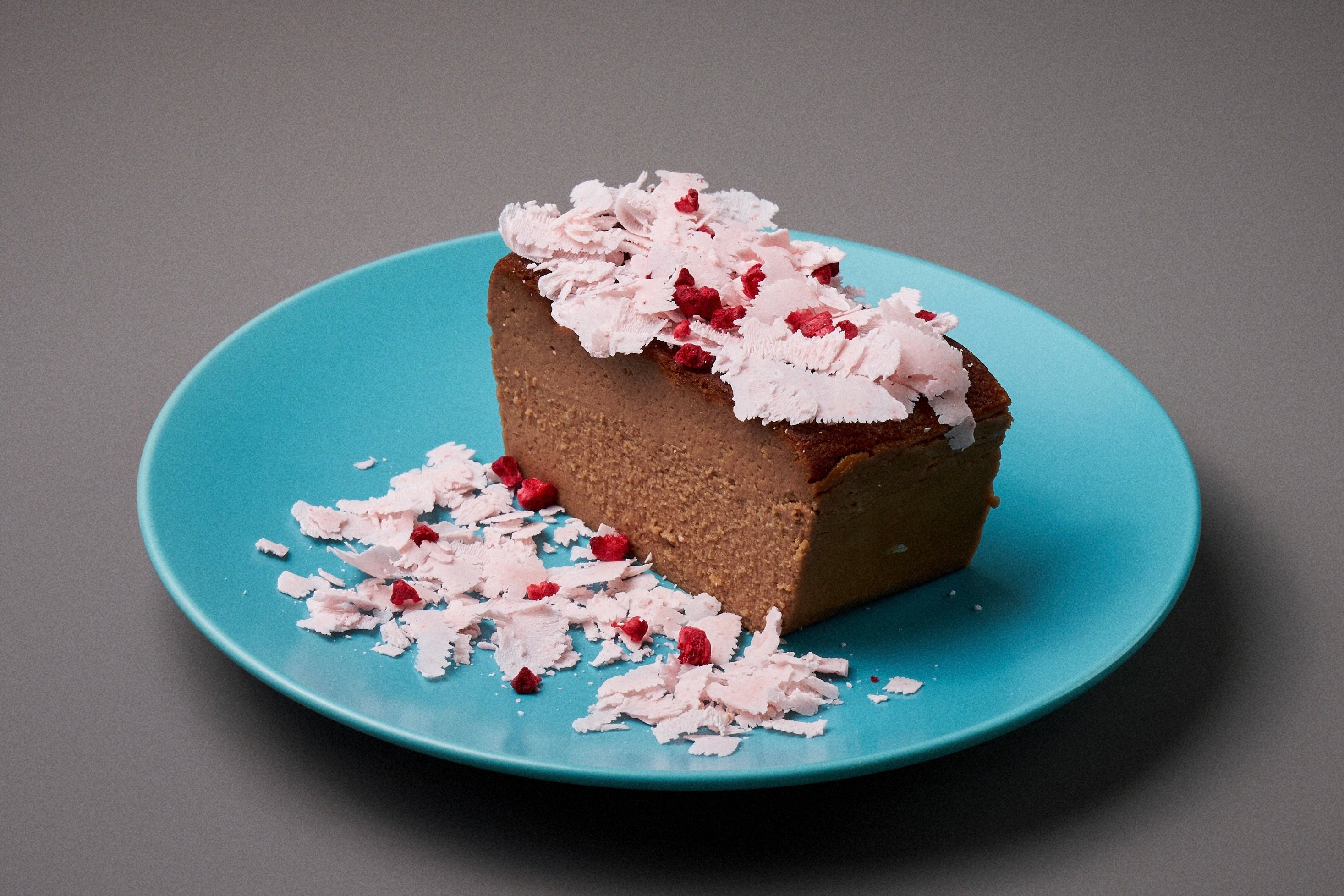 美味しさの決め手は「湯煎焼き」——オーブンのバットにお湯をはり、生地の入った耐熱容器を入れた状態で蒸し焼きにすることで、上部はベイクドチーズのように香ばしく「さっくり」と、生地の外側は「しっとり」、真ん中部分はまるでレアのように「とろり」とした食感に仕上がります。