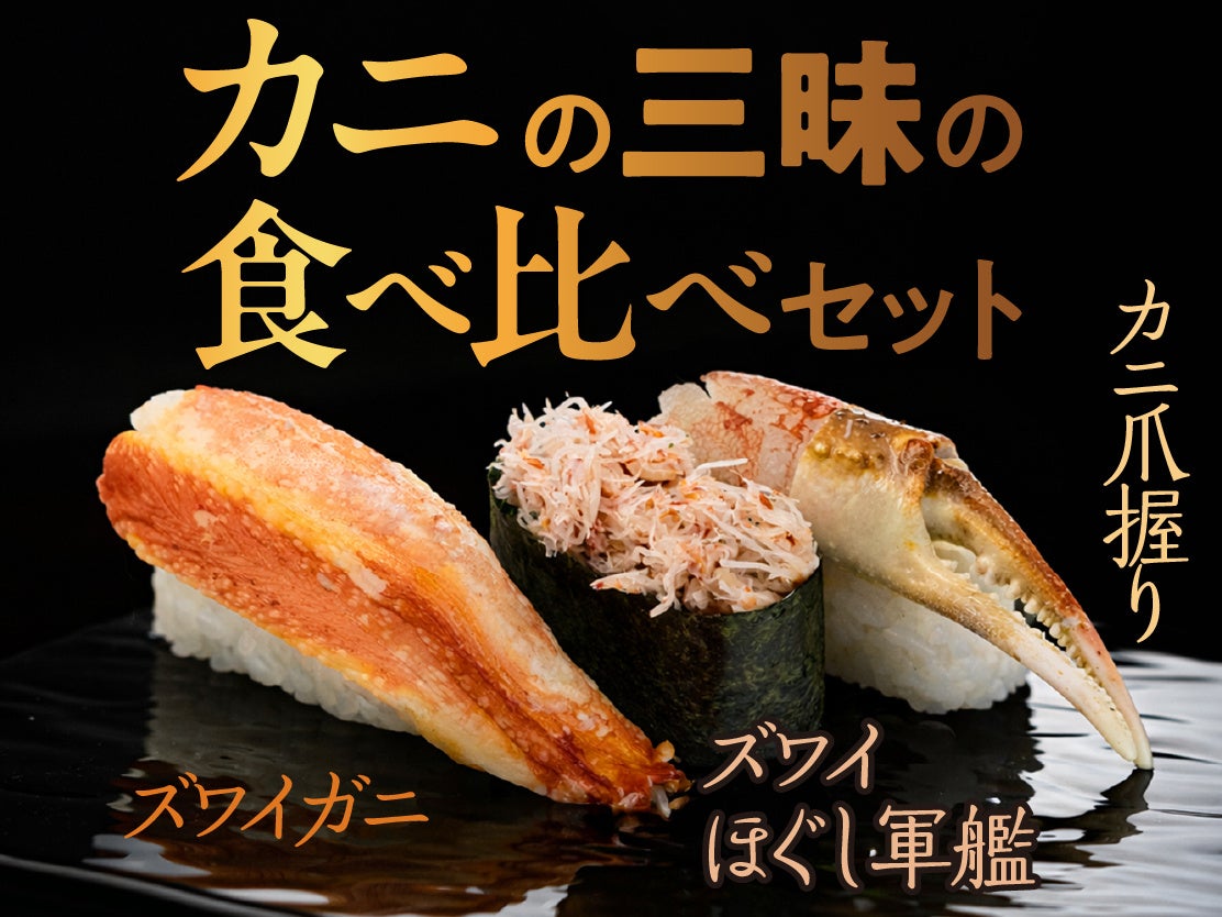 カニの醍醐味がぎっしりの食べ比べセット🦀ズワイガニ・ズワイほぐし軍艦・カニ爪握り