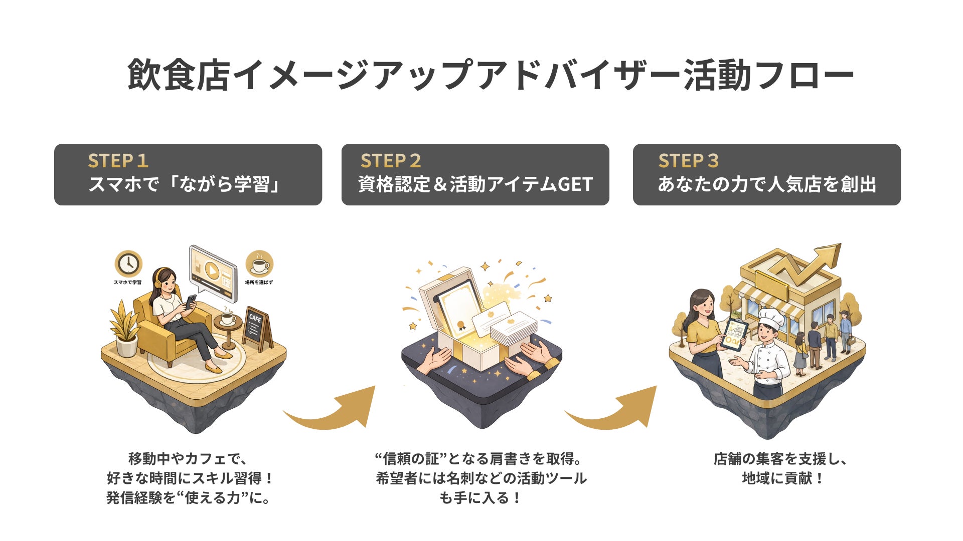 “継続的に選ばれる店へ導く”ための視点とノウハウを身につける実務資格として設計されています。