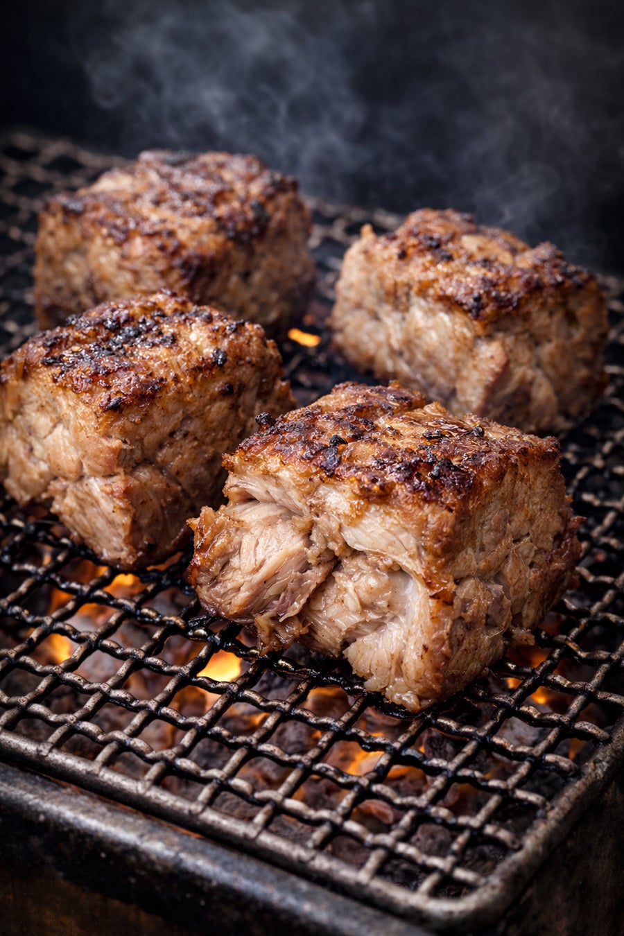 一般的なスライス肉ではなく、大きな塊のまま豪快に炭火焼きし、
