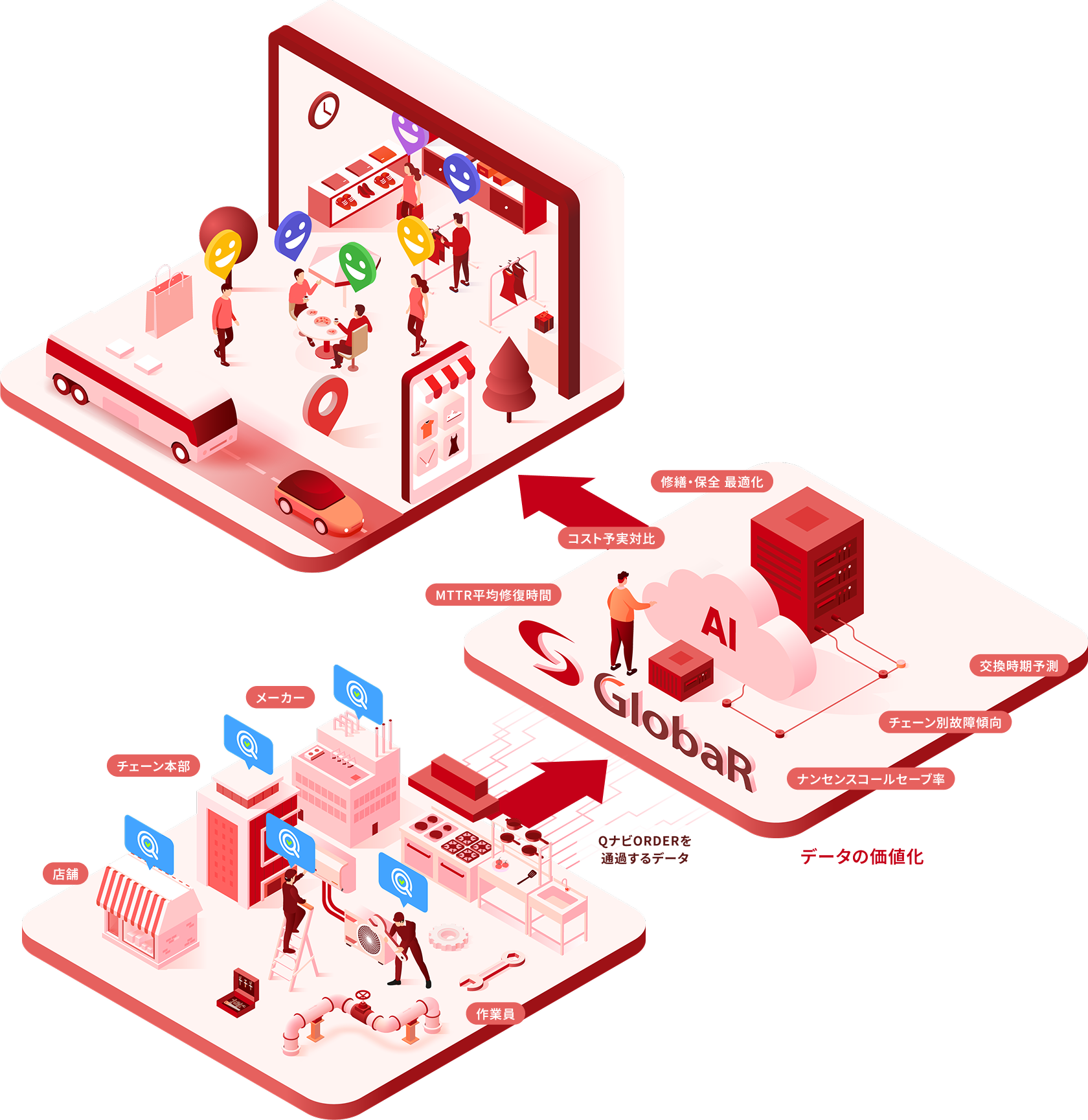 当社はメンテナンス会社として長きに事業展開をして参りましたが、「この国のあらゆる店舗のメンテナンスインフラになる」をビジョンに掲げ、SaaS型プラットフォーム「QナビORDER」を軸として、店舗運営における設備メンテナンスの課題をDXテクノロジーで解決していくことをメインの事業運営として展開して参ります。これまで、現場に根ざしたメンテナンスサービスを提供してきましたが、今後は「この国のあらゆる店舗のメンテナンスインフラになる」というビジョンのもと、業界のデジタルインフラ企業として新たなステージへと進化します。