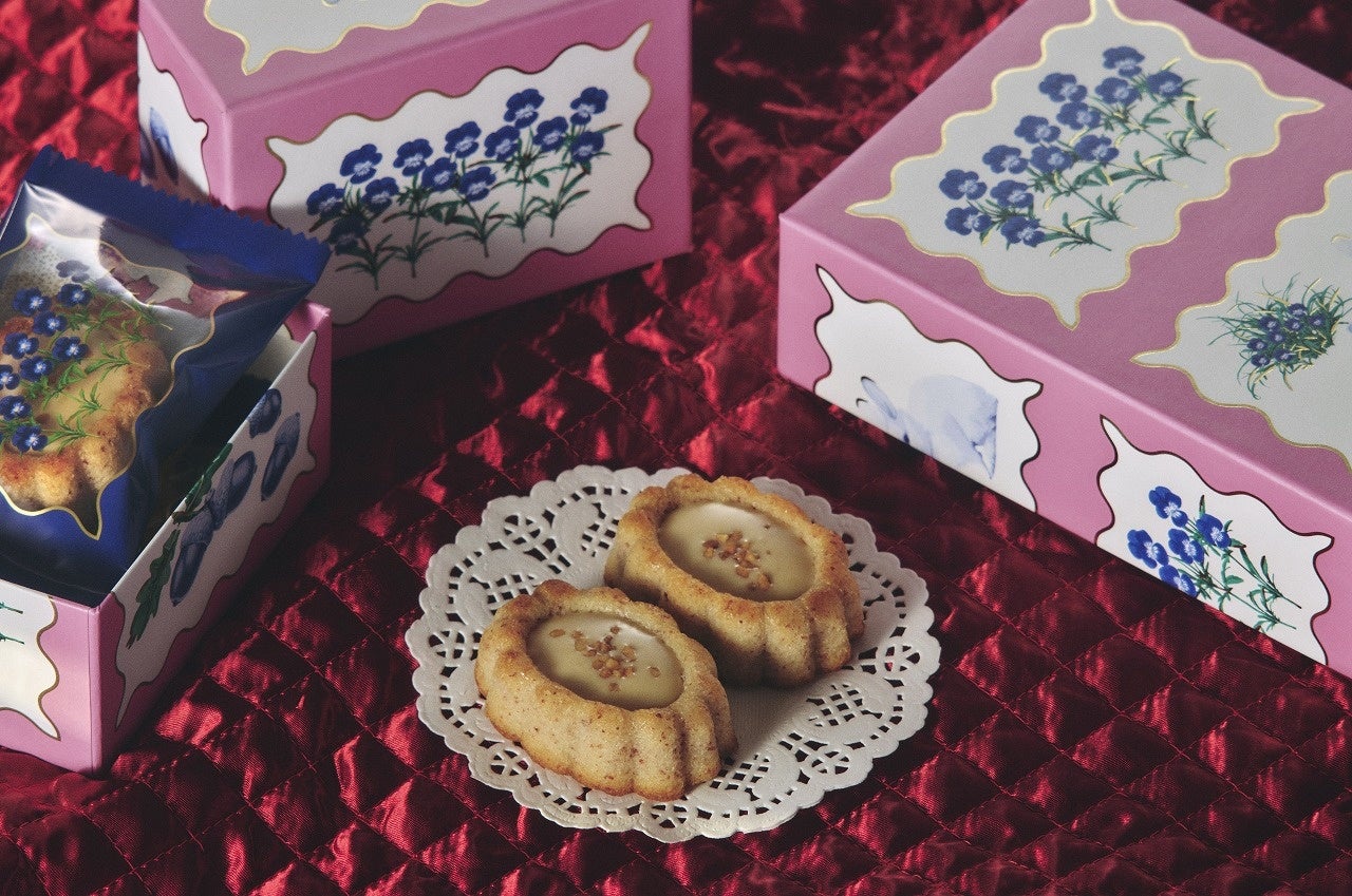 香ばしいアーモンドのパウダーを入れてくちどけよく焼き上げた生地に、コク深いキャラメルチョコレートを合わせました。 美味しさ際立つ素材感と優しい甘さにほっと心癒される味わいです。真っ白なうさぎと鮮やかなブルーのパンジーが描かれたピンクのパッケージは思わず目を引く可愛さです。