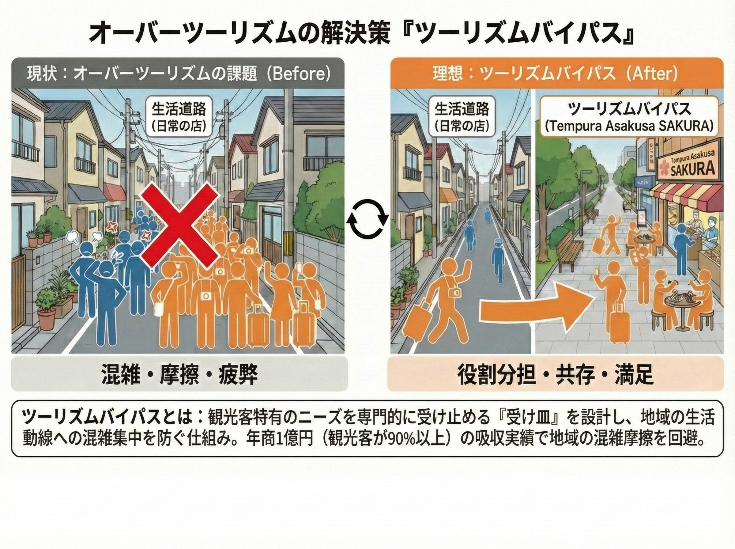 それが、観光客を専用の受け皿へと流し、地域住民の生活動線を守るという考え方「ツーリズムバイパス」です。