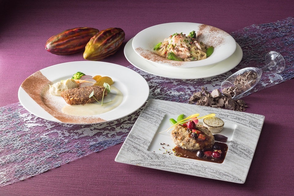 昨年ご好評をいただいた本フェアが、本年はメニューを一新して再登場。ココアやチョコレートなど、ショコラの魅力を取り入れた3種類のメインディッシュ(肉・魚・パスタ)の中から、お好みの一皿をお選びいただけます。“甘い”だけではない、ショコラが持つ深みある香りとまろやかな味わいを料理に生かした、バレンタインシーズンにぴったりの少し大人の特別ランチです。