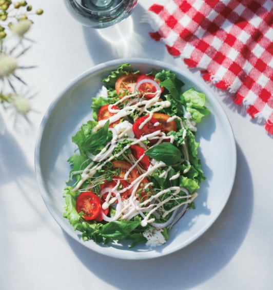 業務用の「キユーピーハーフ」は1996年に販売を開始しました。今回のリニューアルでは、外食・中食のプロの現場で重視される機能性は維持しながら、市販用と同様に「卵黄タイプ」に変更しておいしさの向上を図りました。キユーピーハーフは野菜とあえても離水が少なく、適度な艶とコク、風味を維持できます。また焼成後も適度な焼き色とジューシー感を演出でき、多様なメニューでの汎用性を支えます。