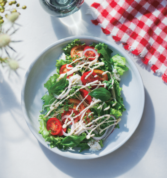 業務用の「キユーピーハーフ」は1996年に販売を開始しました。今回のリニューアルでは、外食・中食のプロの現場で重視される機能性は維持しながら、市販用と同様に「卵黄タイプ」に変更しておいしさの向上を図りました。キユーピーハーフは野菜とあえても離水が少なく、適度な艶とコク、風味を維持できます。また焼成後も適度な焼き色とジューシー感を演出でき、多様なメニューでの汎用性を支えます。