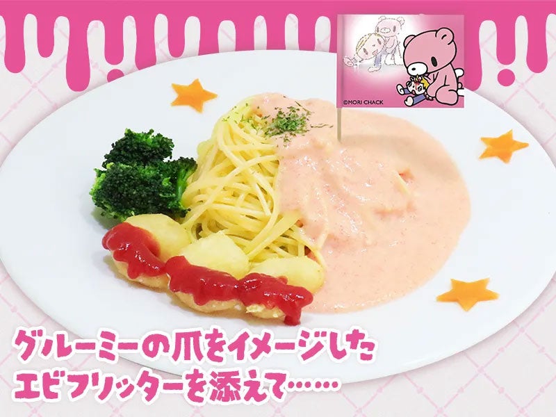 サクサクのコロッケの乗ったオムライス。角のようなヤングコーンがアクセントの「ペガサコーングルーミーオムライス」をはじめ、「グルーミーおうまさんパスタ~爪が食い込んでるよ~」や、「ペガサコーングルーミーパフェ」「ベビーグルーミー&ピティーくんおうまさんスイーツ」、コラボドリンクがずらりとラインナップいたします。