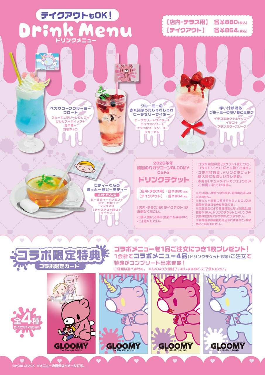午年(うまどし)に合わせてペガサスのようなユニコーンのような馬になったグルーミーをテーマにしたコラボカフェ《2026午年 純潔のペガサコーンGLOOMY Cafe》を、1月17日(土)からキュアメイドカフェ(CURE MAID CAFÉ)にて開催いたします。