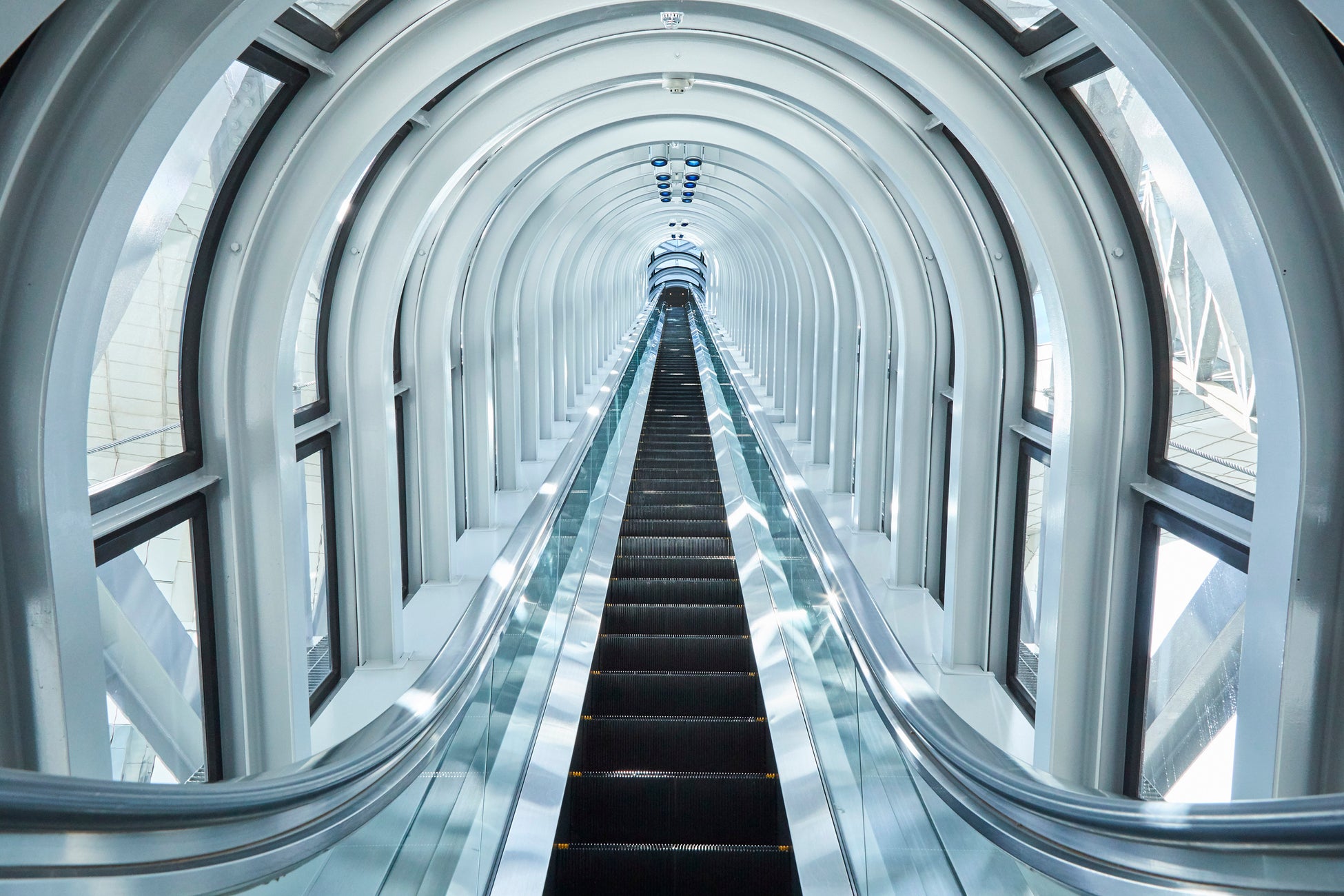 梅田スカイビルは、2棟のビルを屋上を含む上層部「空中庭園」で繋げる独特のフォルムをした世界初の連結超高層建築。