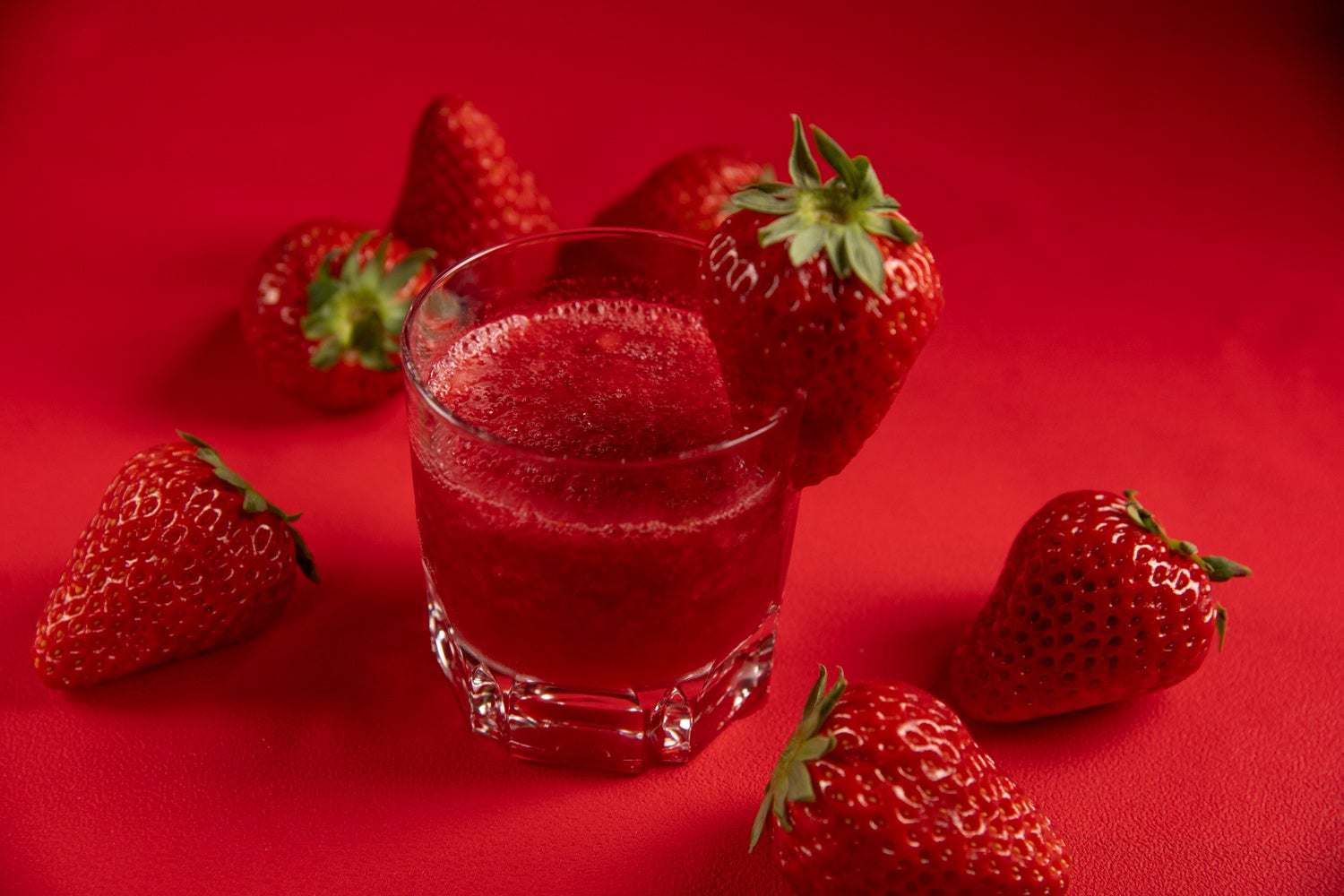 完熟いちごを丸ごとあしらったストロベリーカクテル。