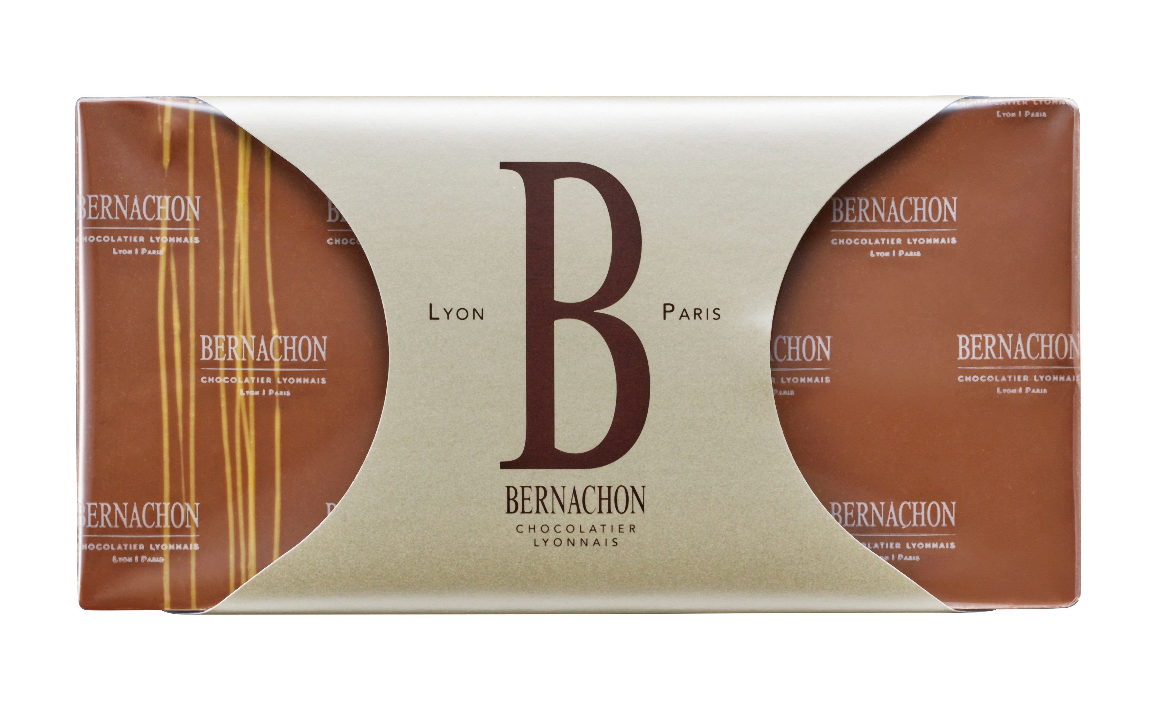 マダガスカル産カカオのガナッシュ、塩キャラメル風味のガナッシュ、ヘーゼルナッツのミルクガナッシュ、ピエモンテ産ヘーゼルナッツのプラリネの4種を詰め合わせました。ため息が出るほどのカラーグラデーション。
