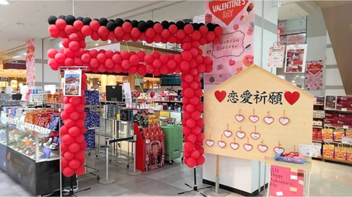 恋愛成就を願うフォトスポットとして、バレンタイン催事コーナーに【鳥居】が登場。