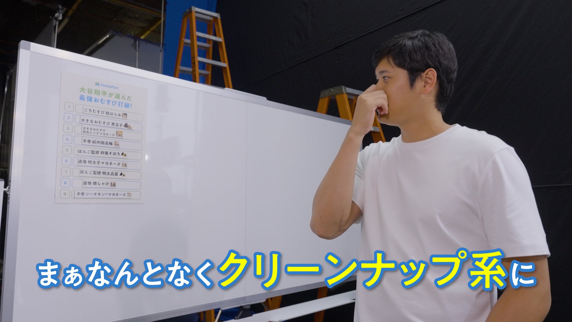 ファミリーマートのおむすび9種類を大谷選手にご試食いただき、野球の打線に例え、“おむすび打線“を考えていただきました。