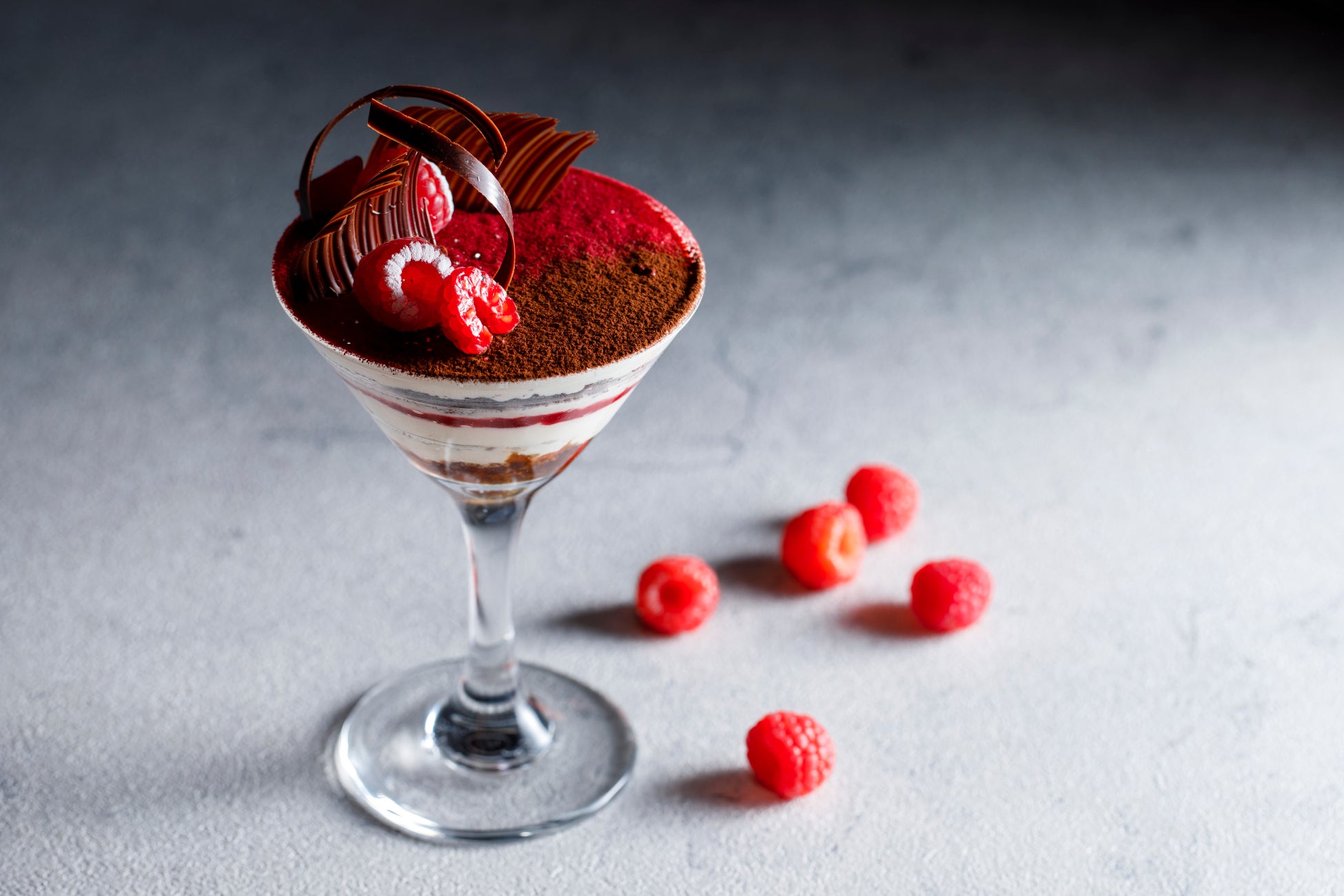 マスカルポーネチーズを贅沢に使った濃厚なクリームに、カマンベール×アールグレイのムースを重ねた、ティラミス仕立ての上品なパフェ。甘酸っぱいフランボワーズやほろ苦いエスプレッソ、ほんのり塩味のムースが重なり合い、ひとさじごとに変化が広がります。素材の調和と奥行きを楽しむ、大人のデザートです。
