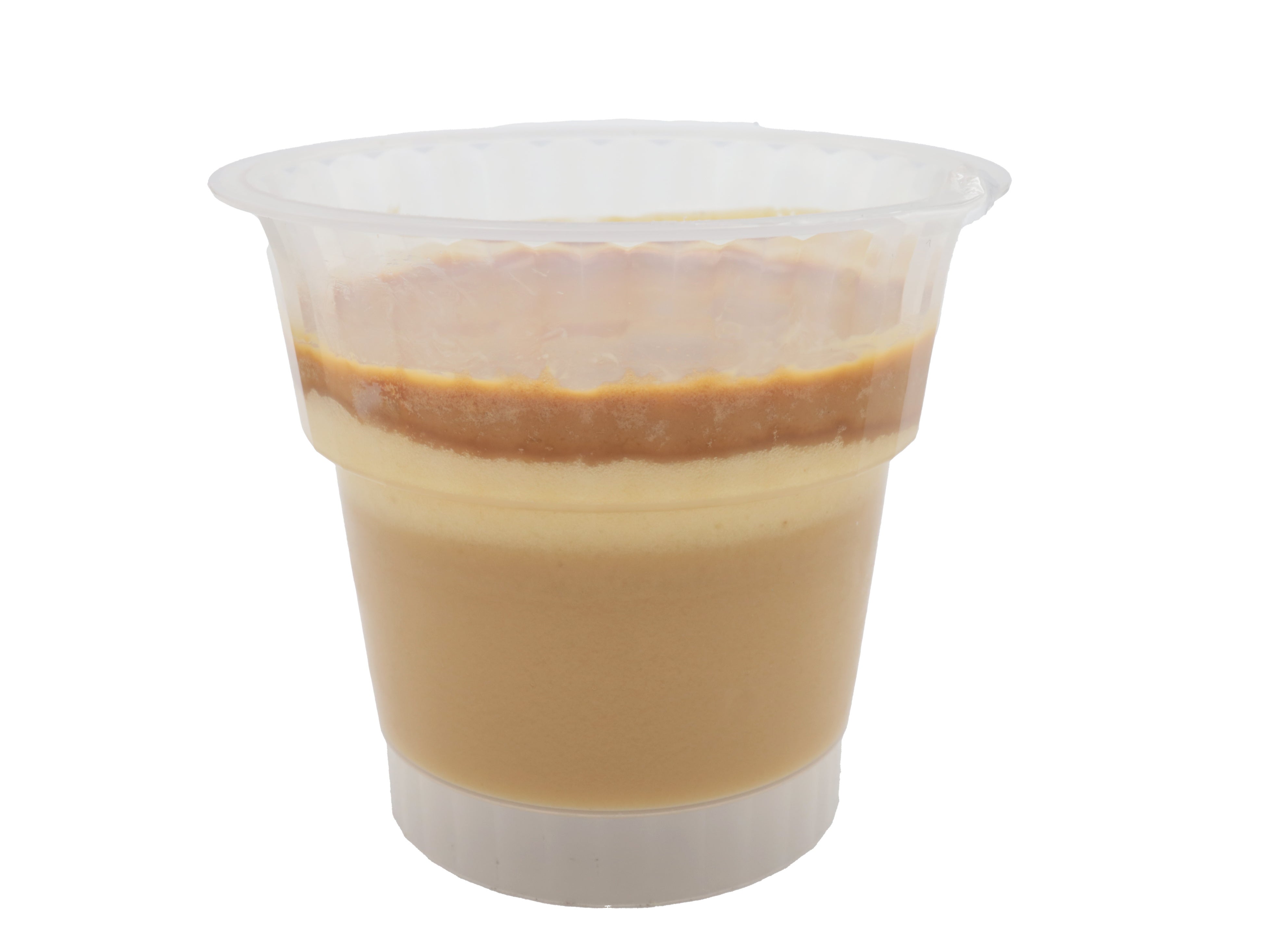 カップで食べるきなこもちをコンセプトに、上からきなこチョコ、もちグミをイメージしたもっちり食感きなこスフレ、なめらかきなこプリンを重ねています。