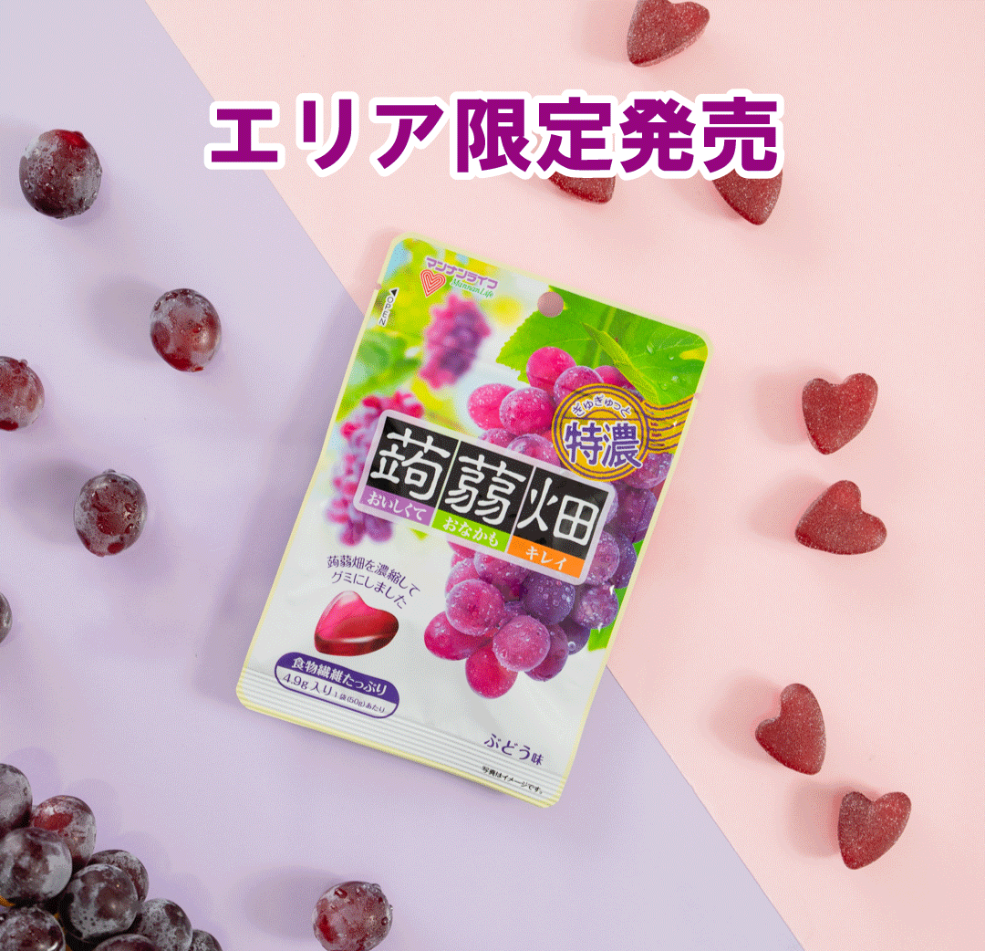 株式会社マンナンライフ(本社 群馬、社長 鶴田一裕)は、1月13日(火)より「ぎゅぎゅっと特濃蒟蒻畑ぶどう味」をエリアを拡大して発売いたします。