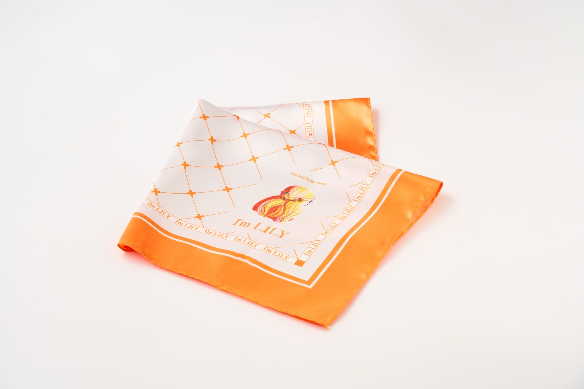 税込5,000円以上お買い上げのお客様に、『オリジナルスカーフ』を数量限定でご用意しております。アイム リリーのイメージカラーであるオレンジを採用。右下にはブランドロゴを配し、ブランドの世界観と共にお客様のお手元をさりげなく飾ります。数に限りがございますので、お早めにお越しくださいませ。