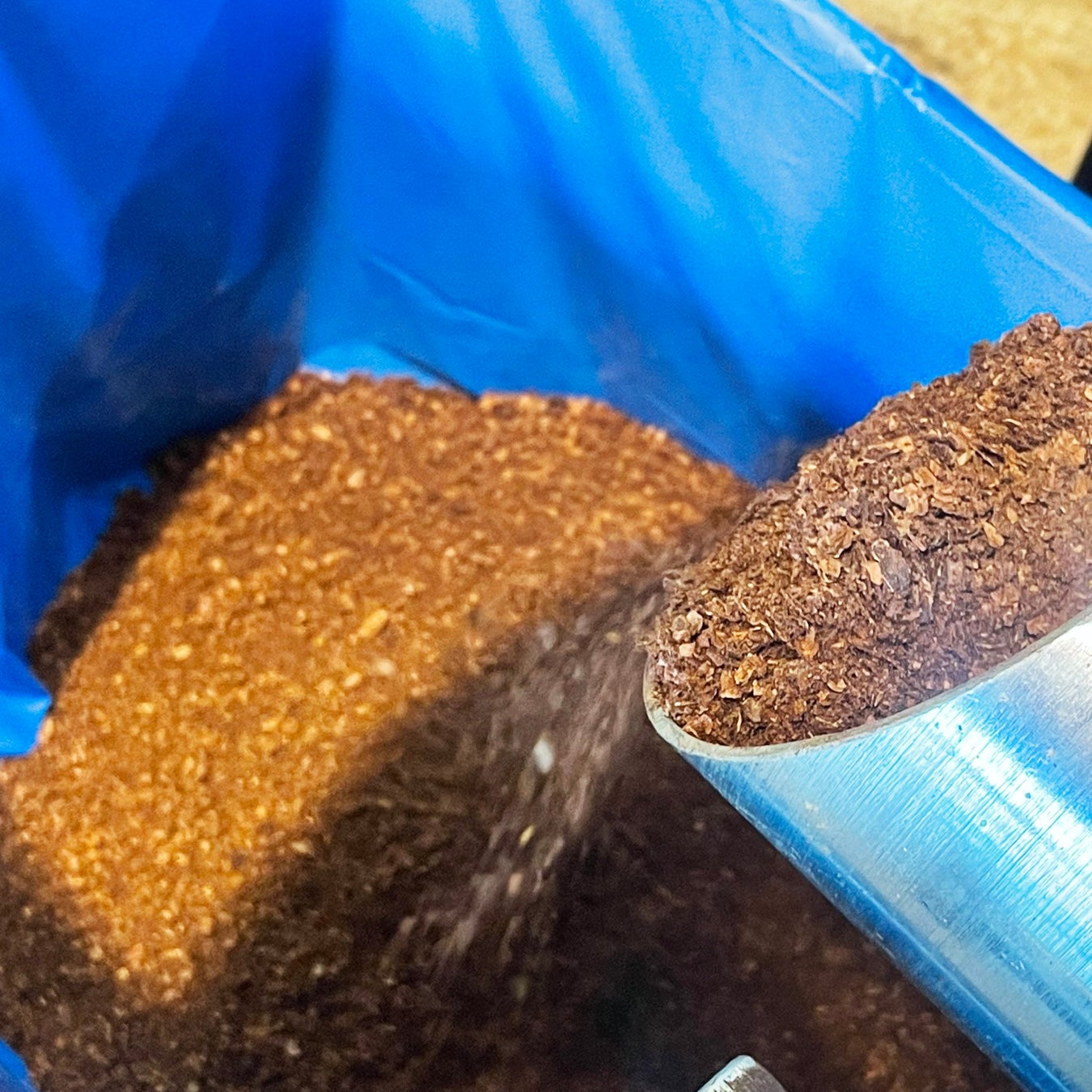 カカオハスクは、チョコレートの原料となるカカオ豆の“外皮”です。カカオ豆を焙煎・粉砕する時に外皮の「カカオハスク」と、中身の「カカオニブ」に分けられ、カカオハスクはチョコレートを作る過程で使うことがありません。 チョコレートデザイン株式会社では、チョコレートの生産で年間およそ12トンのカカオハスクが排出されています。これらを廃棄することなくアップサイクルする方法を模索するため、2020年にカカオハスクのアップサイクル事業を立ち上げました。