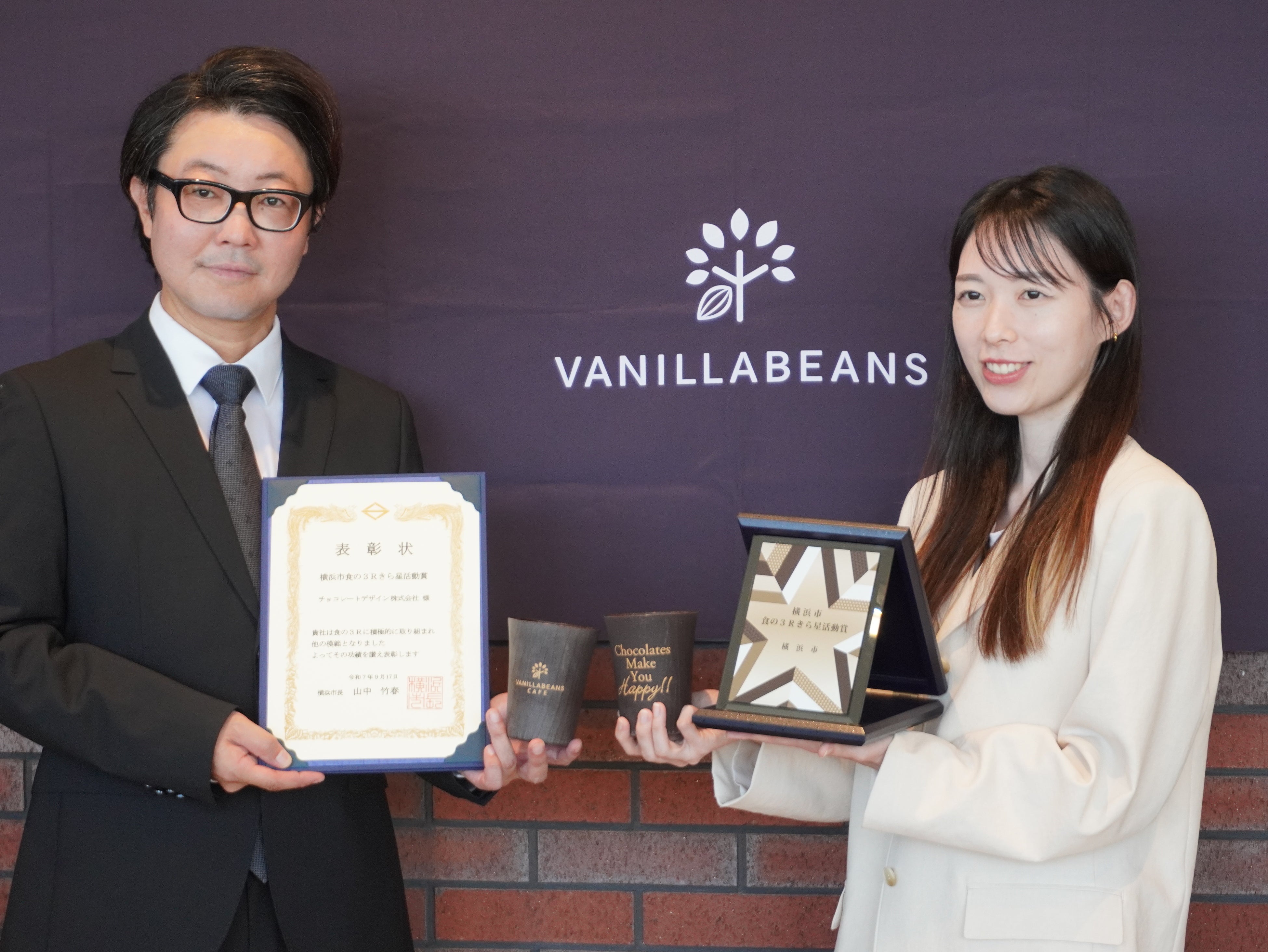 VANILLABEANS(バニラビーンズ)を運営するチョコレートデザイン株式会社は、チョコレートの製造工程で排出されるカカオハスクのアップサイクル活動のほか、副産物のココアパウダーを活用したフードロス削減の取り組みが評価され、横浜市資源循環局主催「横浜市食の3Rきら星活動賞」を受賞いたしました。