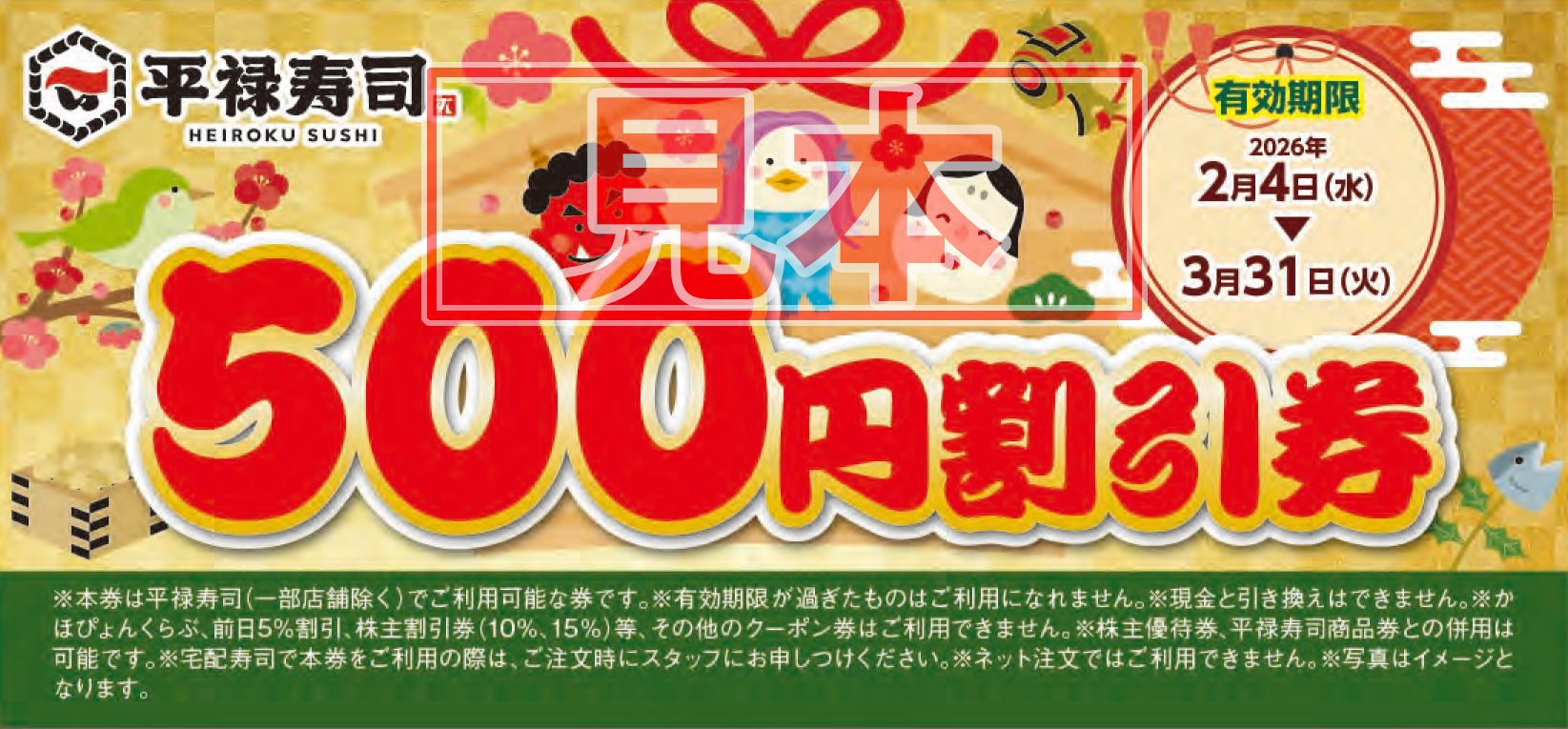 そして、1月31日(土)までのご予約で恵方巻を含むお持ち帰り商品2,500円(税込)以上お買い上げごとに500円割引券もプレゼントいたします。