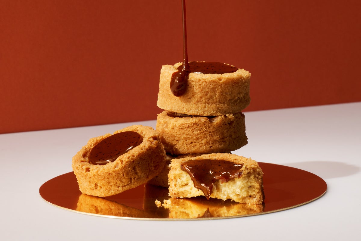 ミルクチョコレートで深いコクを引き出したキャラメル生地に、とろけるビターキャラメルをそっと閉じ込め、アールグレイの香りが広がるキャラメルソースをかけました。豊かな味わいが至福のひとときを演出する特別なひと品です。