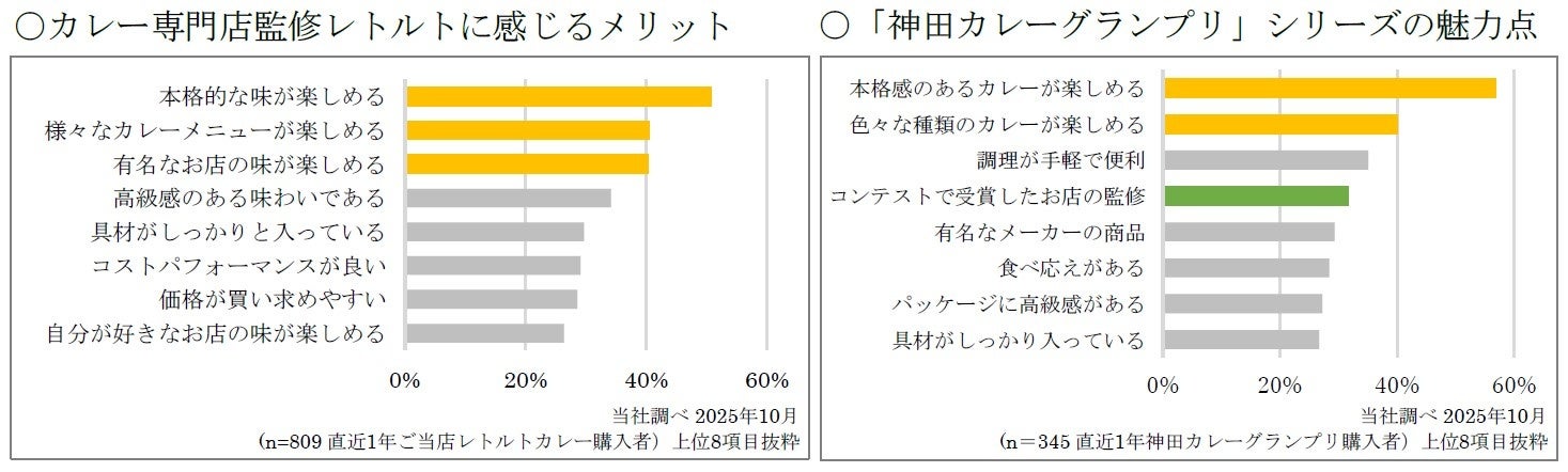 ご当店レトルトカレーは、外食のようなメニューや味わいを家庭で楽しみたいというニーズに応える商品として支持されています。なかでも、「神田カレーグランプリ」シリーズは、受賞店舗の監修による本格感と豊富なバリエーションで、自宅にいながら名店の味を堪能できる点が魅力です。