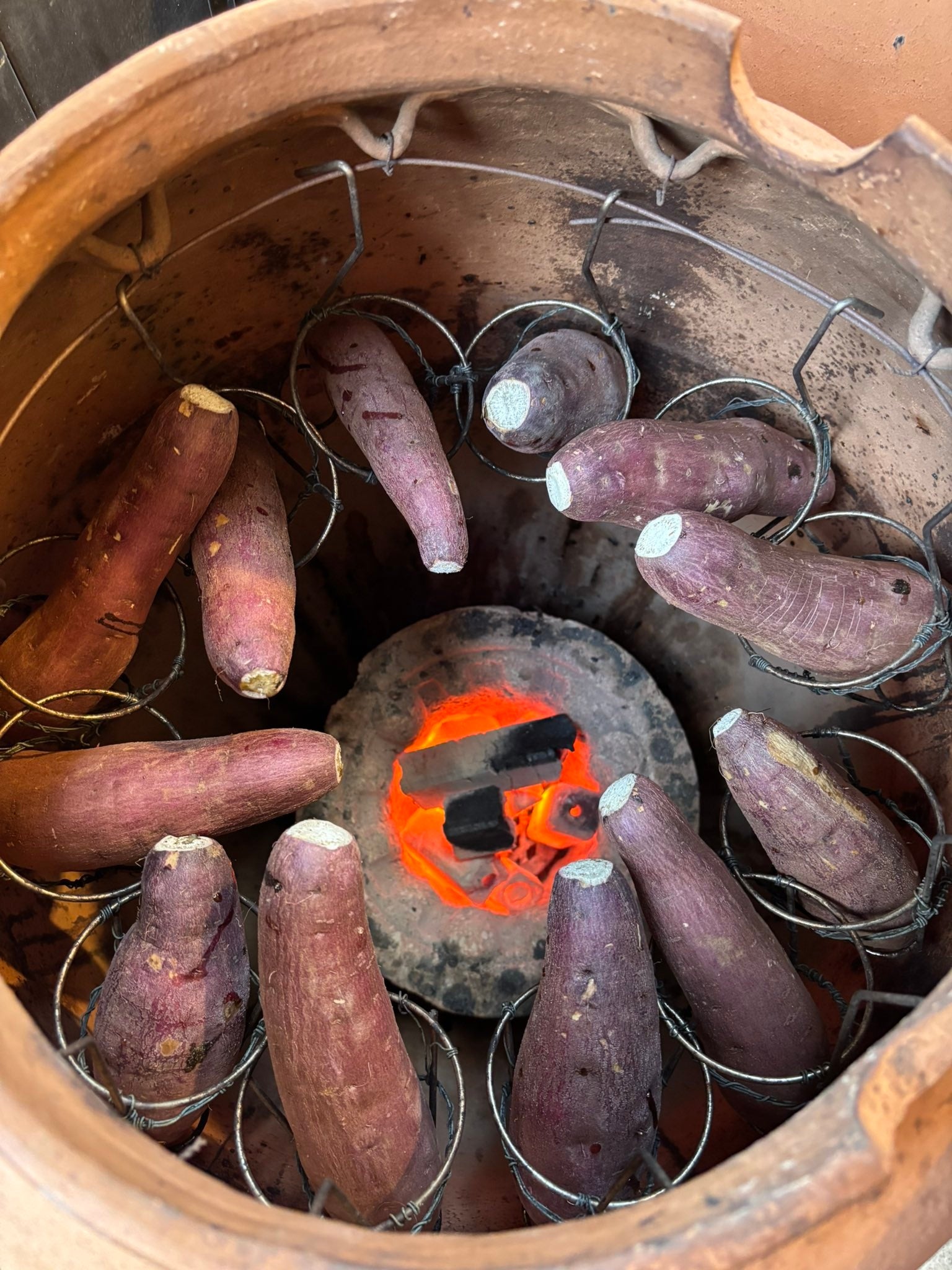 厳選した茨城県産の紅はるかを、特別な炭と常滑焼の壺を使って二時間以上かけて焼きあげています。