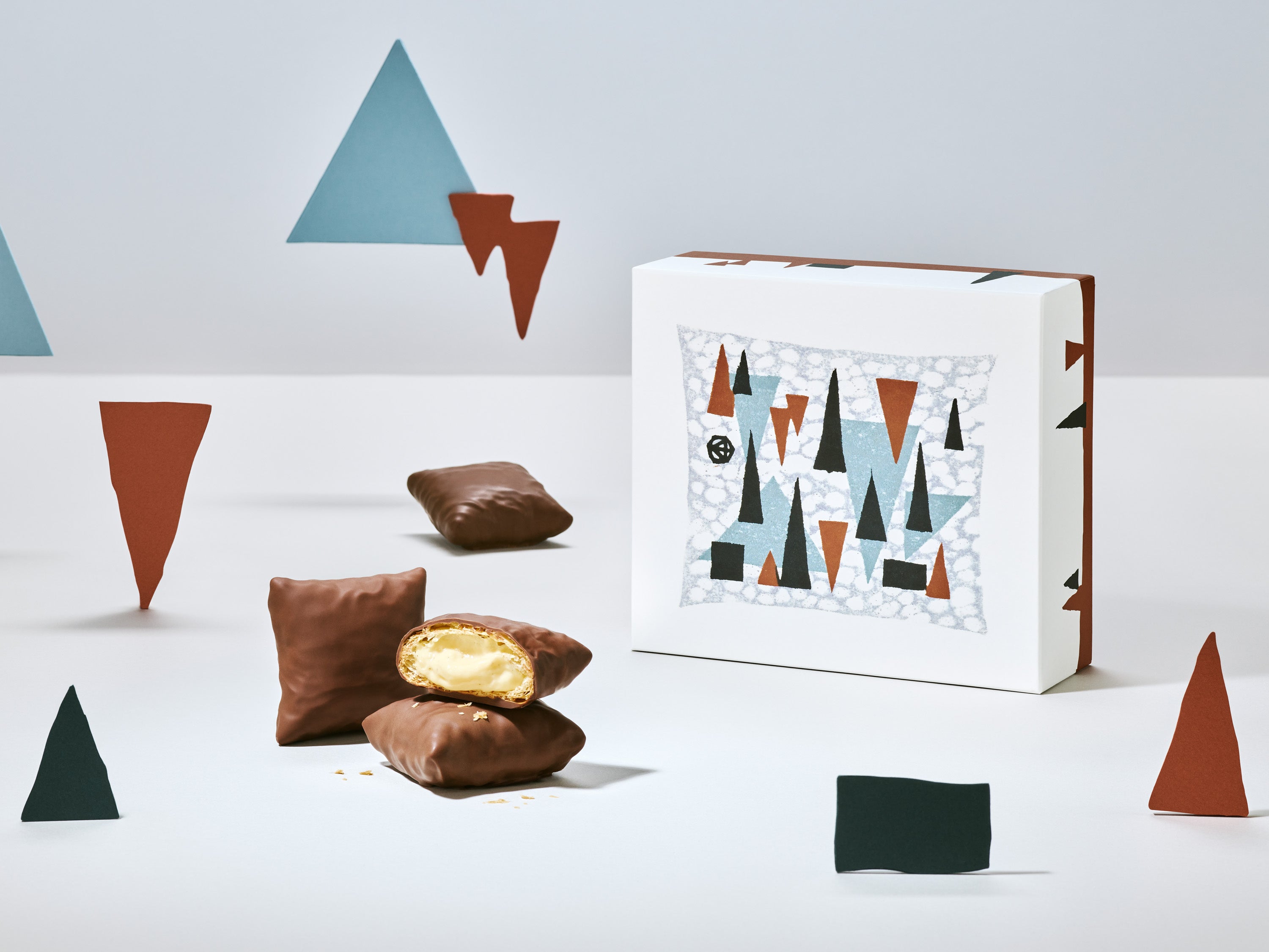 版画家 大谷一良さんの作品「森の見る夢」の木々をモチーフした3つの形のチョコレートが特徴です。