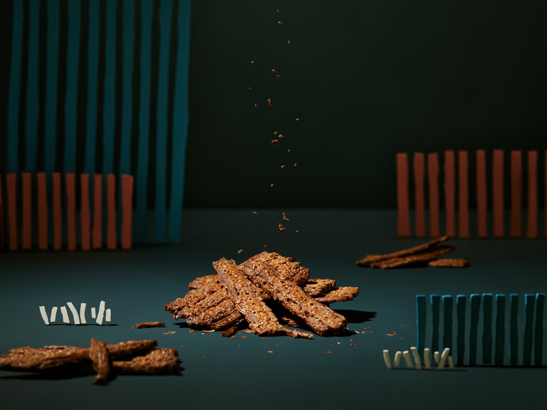 スノーサンドのラングドシャクッキーをたっぷり練り込んだチョコレートクッキー生地とチョコレートパイ生地を丁寧に重ね、仕上げにチョコレートシロップをまとわせました。チョコレートの豊かな風味、ザクッとした食感、ほのかに溶け込むキャラメルの甘みが、冬の味覚をやさしく包みます。見た目もまるで木の樹皮のように表情豊かで、ひと口ごとにパイの香ばしさとチョコレートのコクが広がります。枯れ木を“トントン”叩くと“パラパラ”と樹皮が落ちるような、冬の森を思わせる一品です。