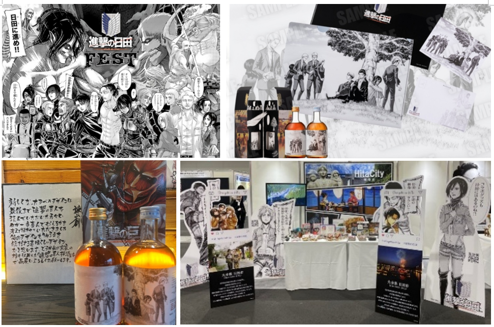 日田市で展開されている「進撃の日田フェスタ」(~2026年3月1日)と連動し、人気作品『進撃の巨人』と作者の故郷日田とのつながりを意識したフォトスポットなどを設置します。また、梅酒蔵おおやま・道の駅「水辺の郷おおやま」でしか購入できない初回販売特典付きの「進撃の巨人梅酒」をはじめとした、地元事業者のコラボグッズも販売致します。ぜひ会場にお越しいただき、「進撃の日田フェスタ」の世界観を体感してください。