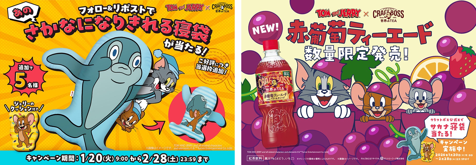 ご好評につき、「トムとジェリー」と「クラフトボス 世界のTEA」のコラボキャンペーンの当選枠を拡充し、第2弾として実施します。