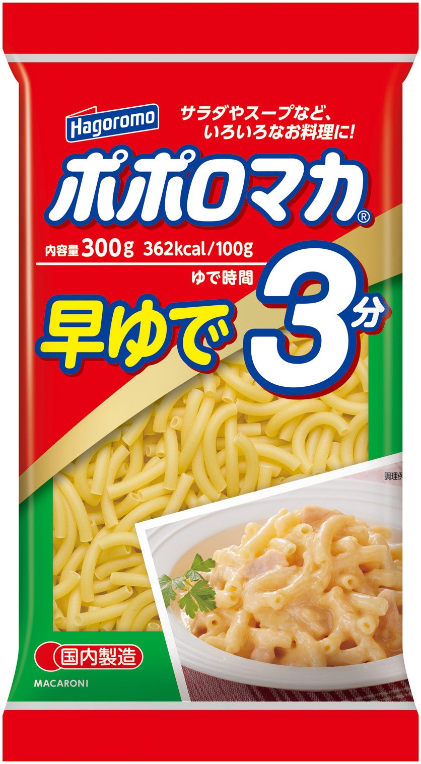 はごろもフーズ株式会社(本社:静岡県静岡市 社長:後藤佐恵子)は、ゆで時間3分のマカロニ『ポポロマカ』3種を発売します。