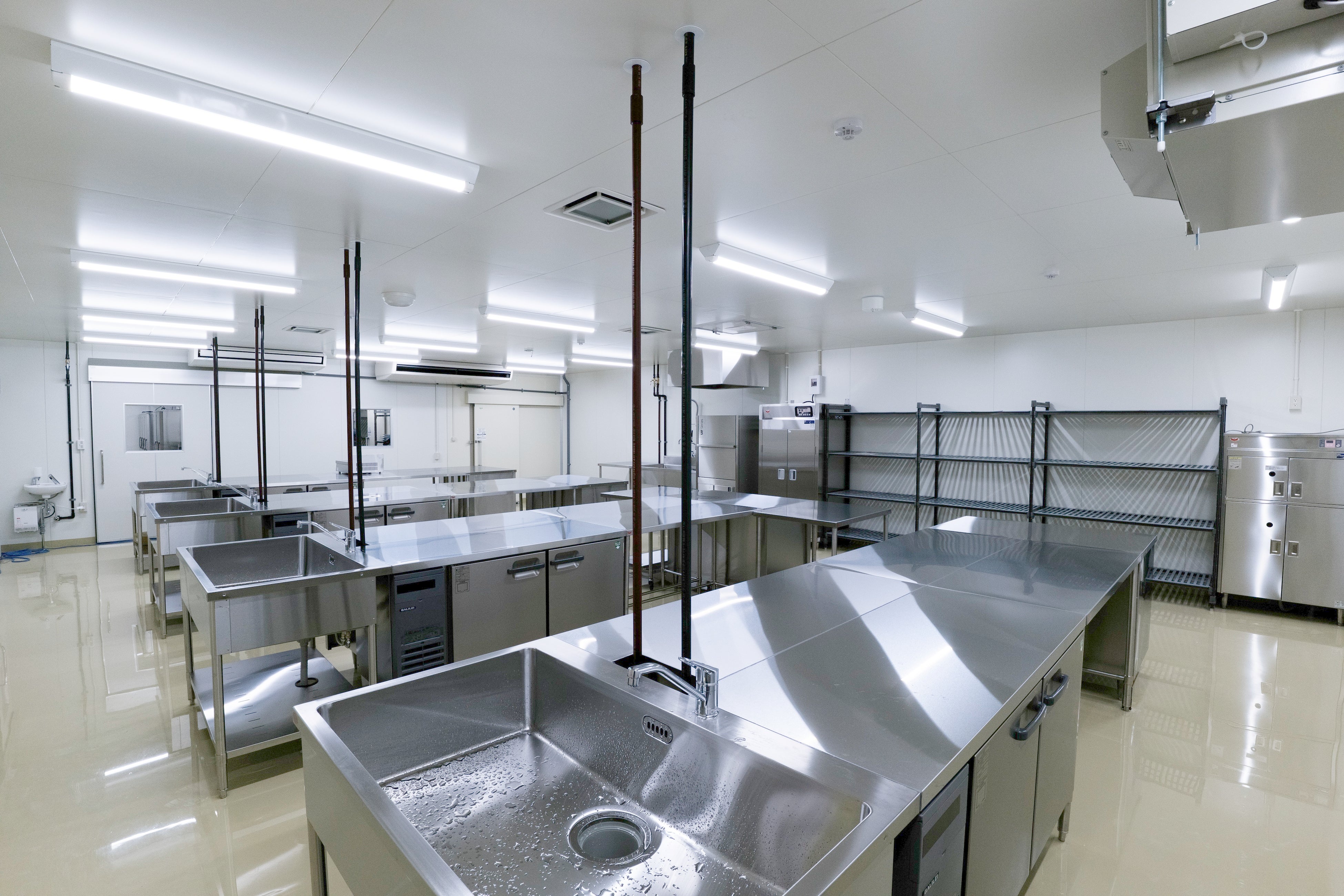 本施設は、現時点での標準となる最新の調理・冷却・衛生管理設備を導入。併設された研修施設での講習を含む、以下の2段階・最短1ヶ月のプログラムにより、未経験からでも「つくりおき.jp」の品質を再現できる体制を整えています。